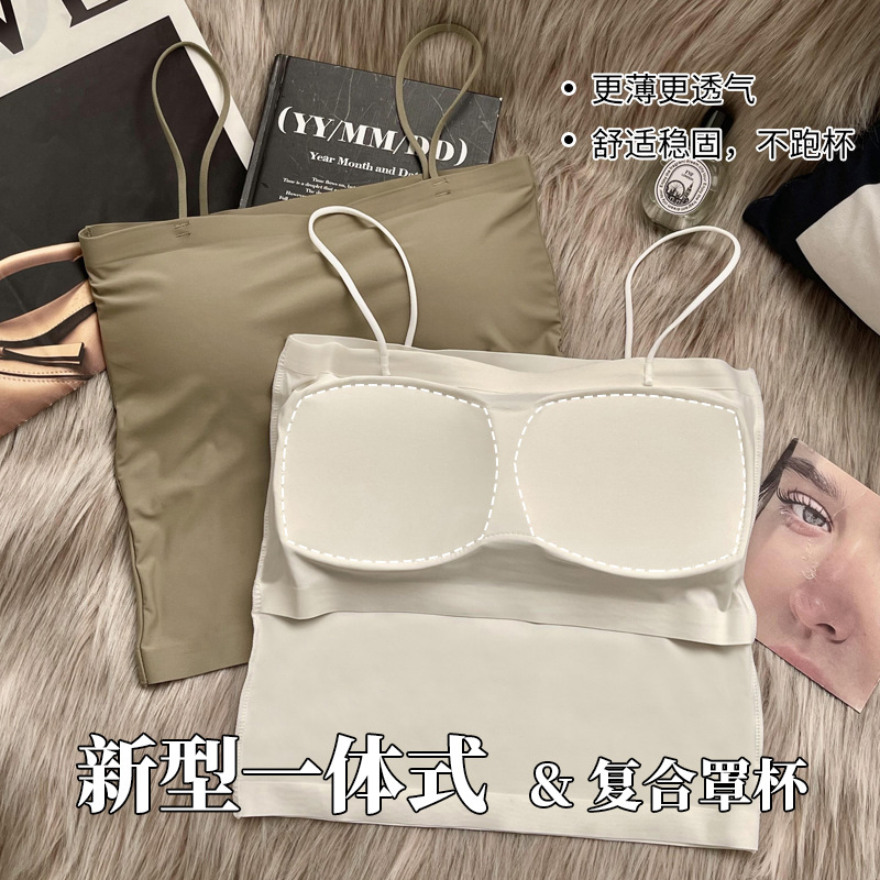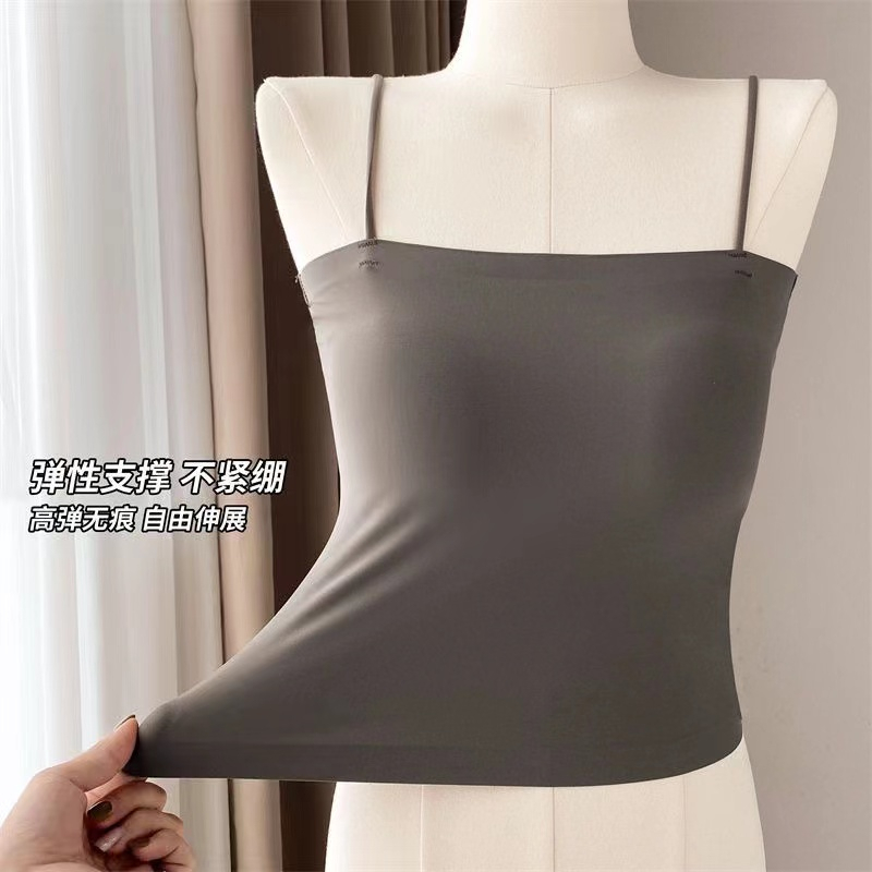 Maniyun Summer Ice Silk Sling Camisole With Bra Padding Women Singlet Top Seamless Suspender