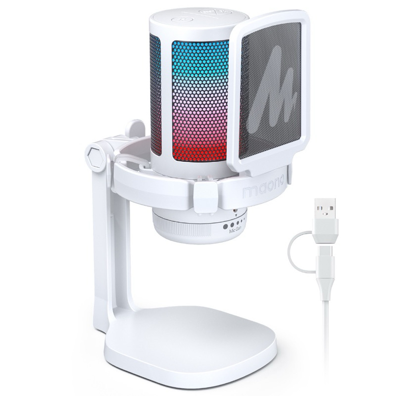 Maono DGM20 RGB USB Microphone Gaming Mic USB Condenser Mic RGB Mic Noise Canceling Mic with Mic Gain,RGB Light