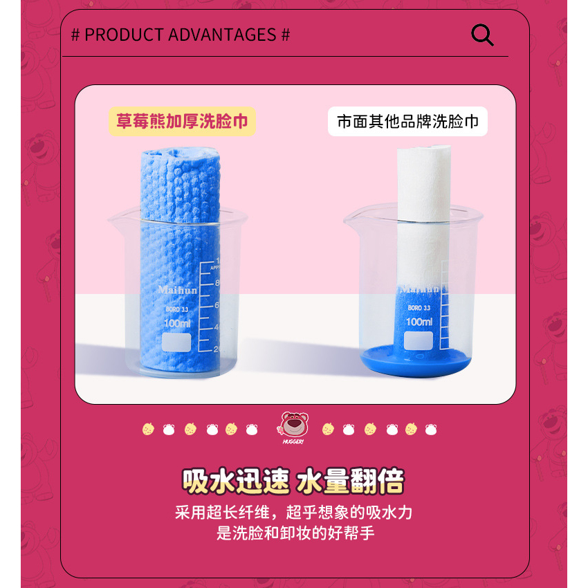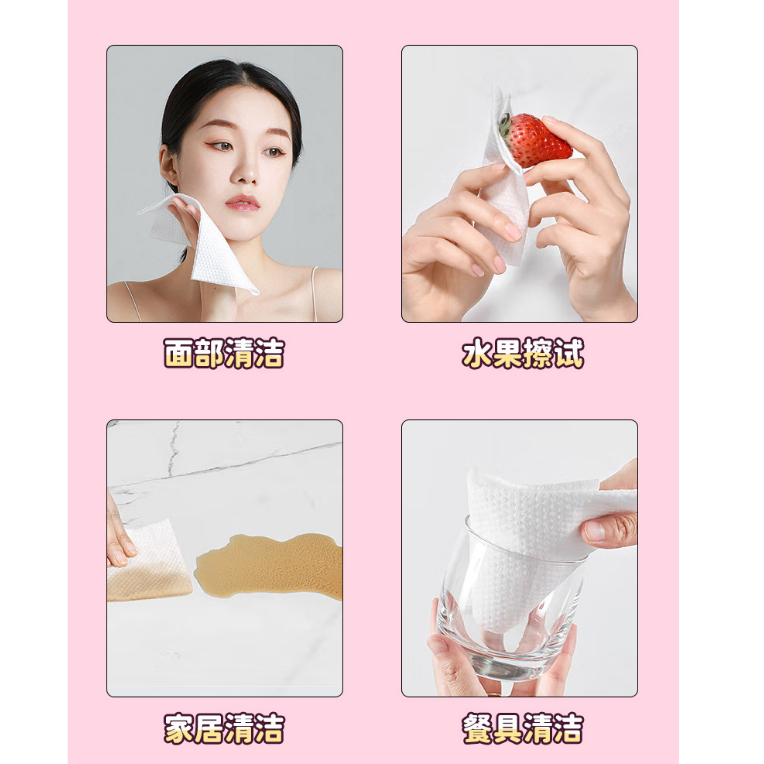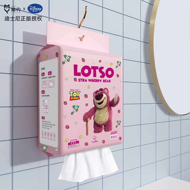 猫约草莓熊一次性纯棉洗脸巾 MAOYUE Suspension Disposable Pure Cotton Face Towel 悬挂抽取式家庭装纯棉洁面巾擦脸巾