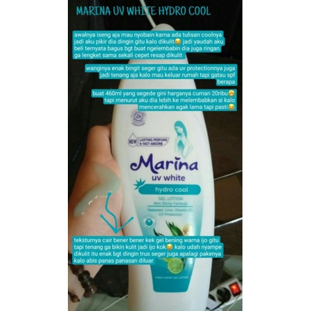 Marina uv white hand & body lotion.92ml/185ml/460ml.