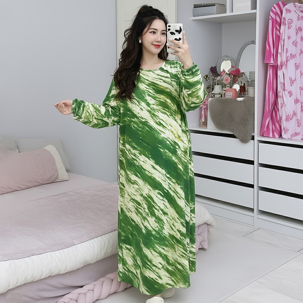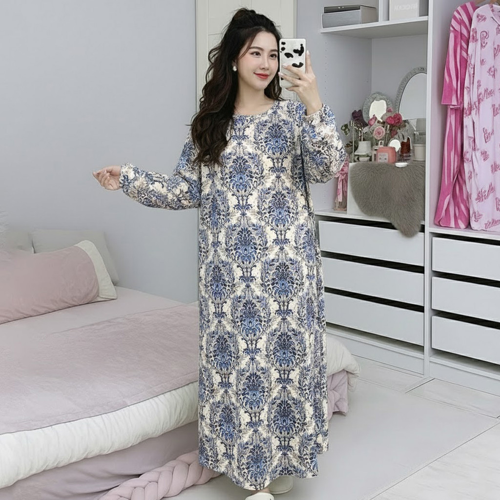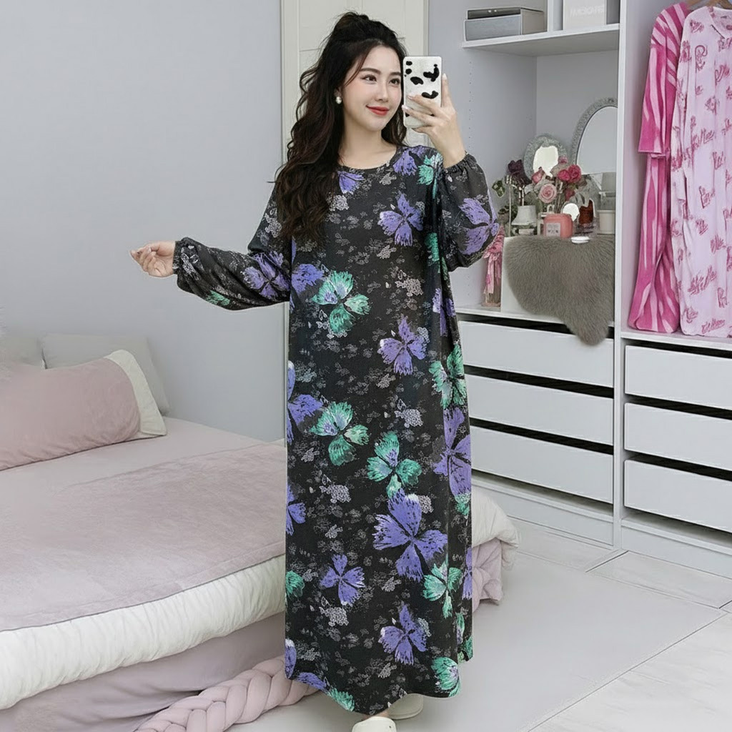McJoden - HIYORI Kaftan Dress Lengan Panjang & Suku Baju Tidur Perempuan Kain Serap Peluh