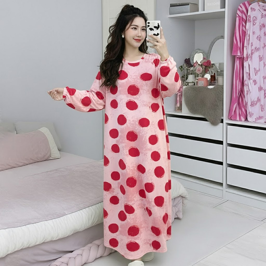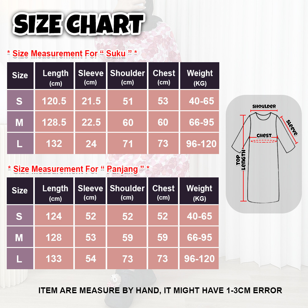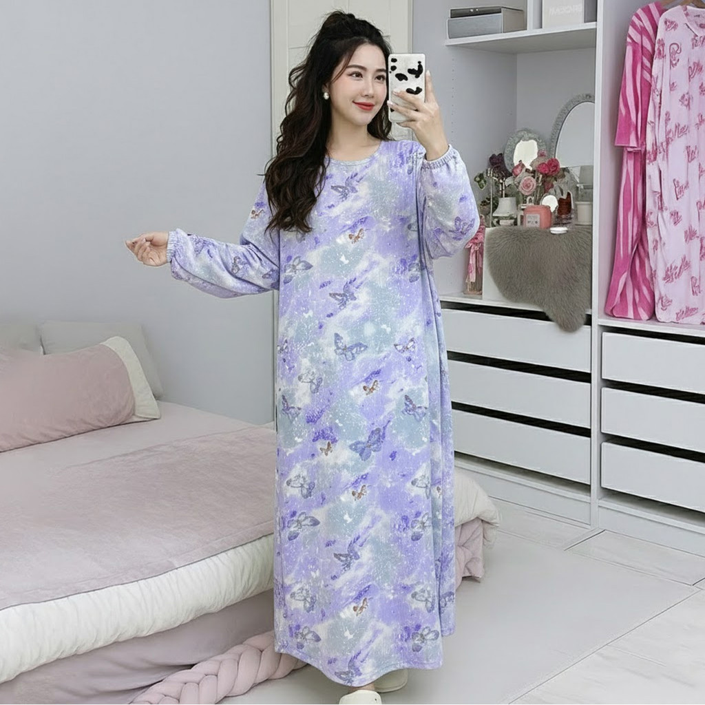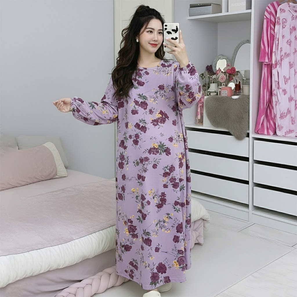 McJoden - HIYORI Kaftan Dress Lengan Panjang & Suku Baju Tidur Perempuan Kain Serap Peluh