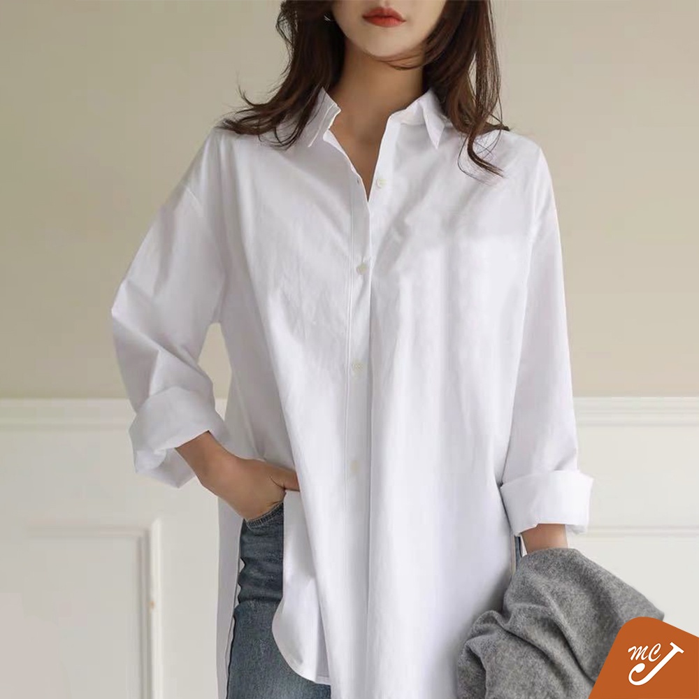 McJoden - INTHIRA Women Long Sleeve Casual Blouse Loose Split Hem Plus Size