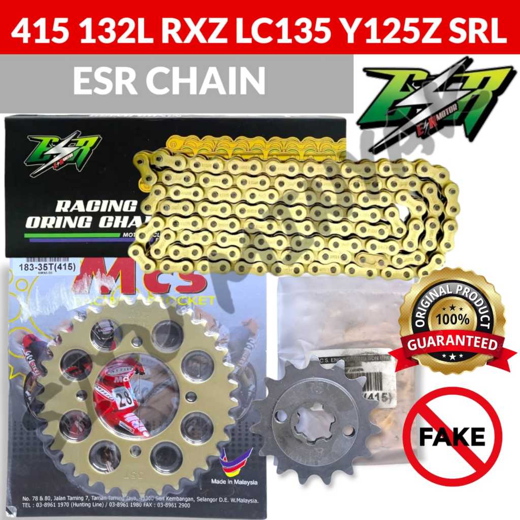 MCS 415 183 SPROCKET SET WITH ESR ORING HEAVY DUTY CHAIN GOLD LC135 RXZ Y125Z Y110 Y100 SRL110 RANTAI EMAS ESR 415-132L