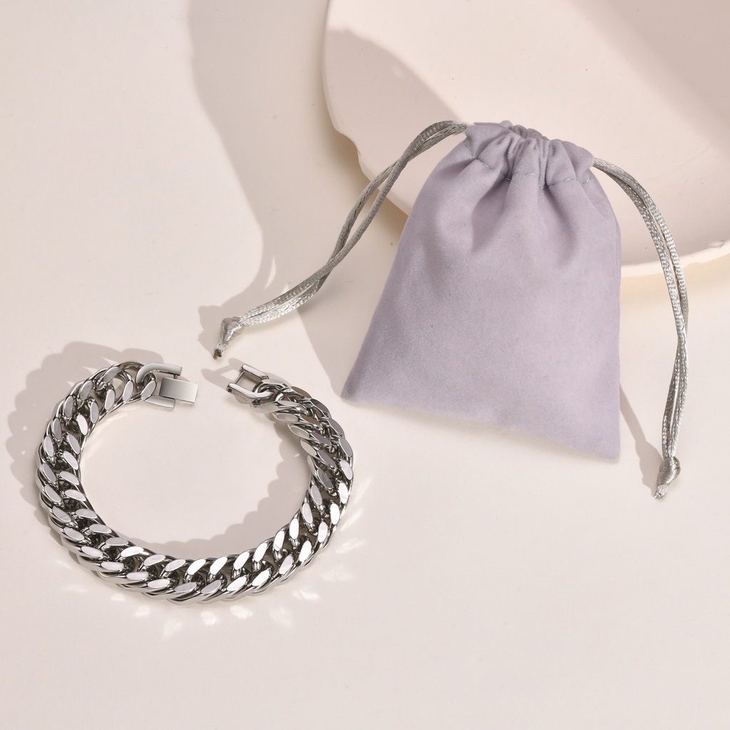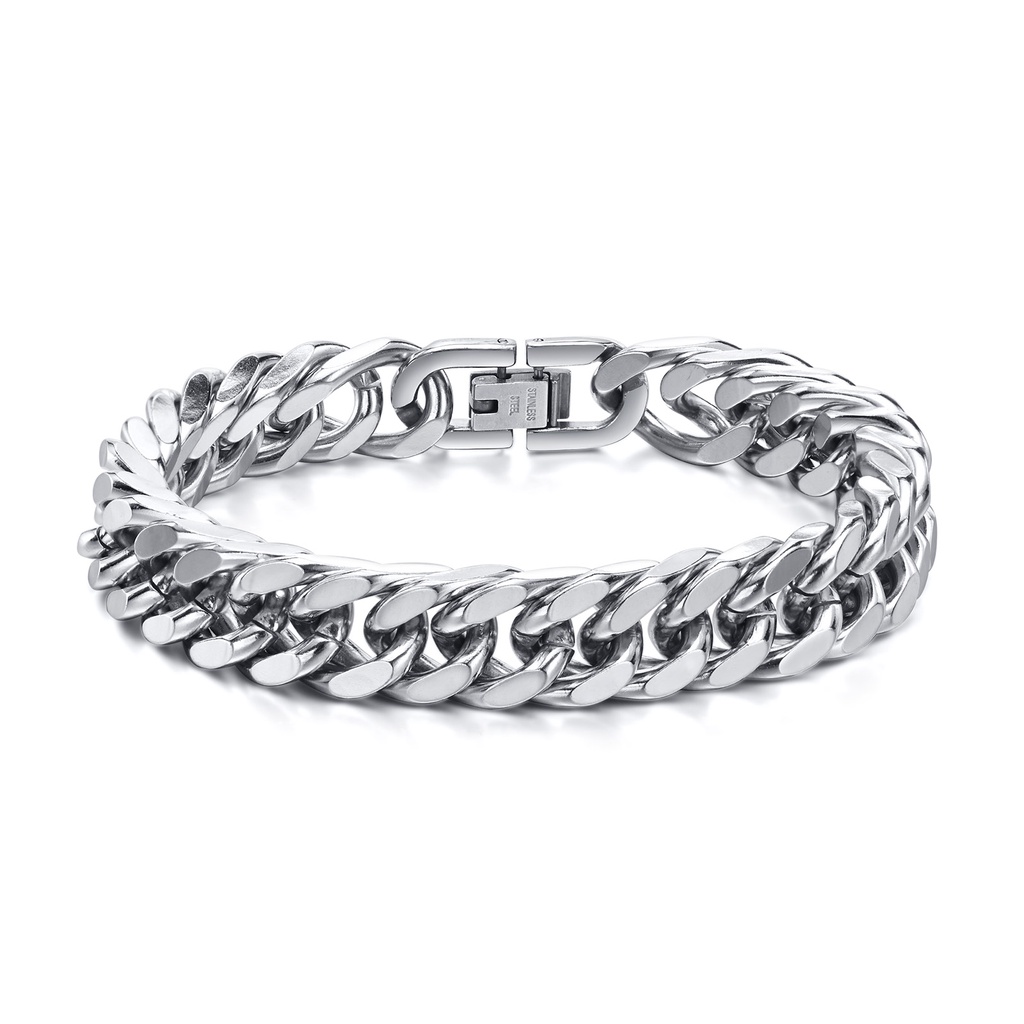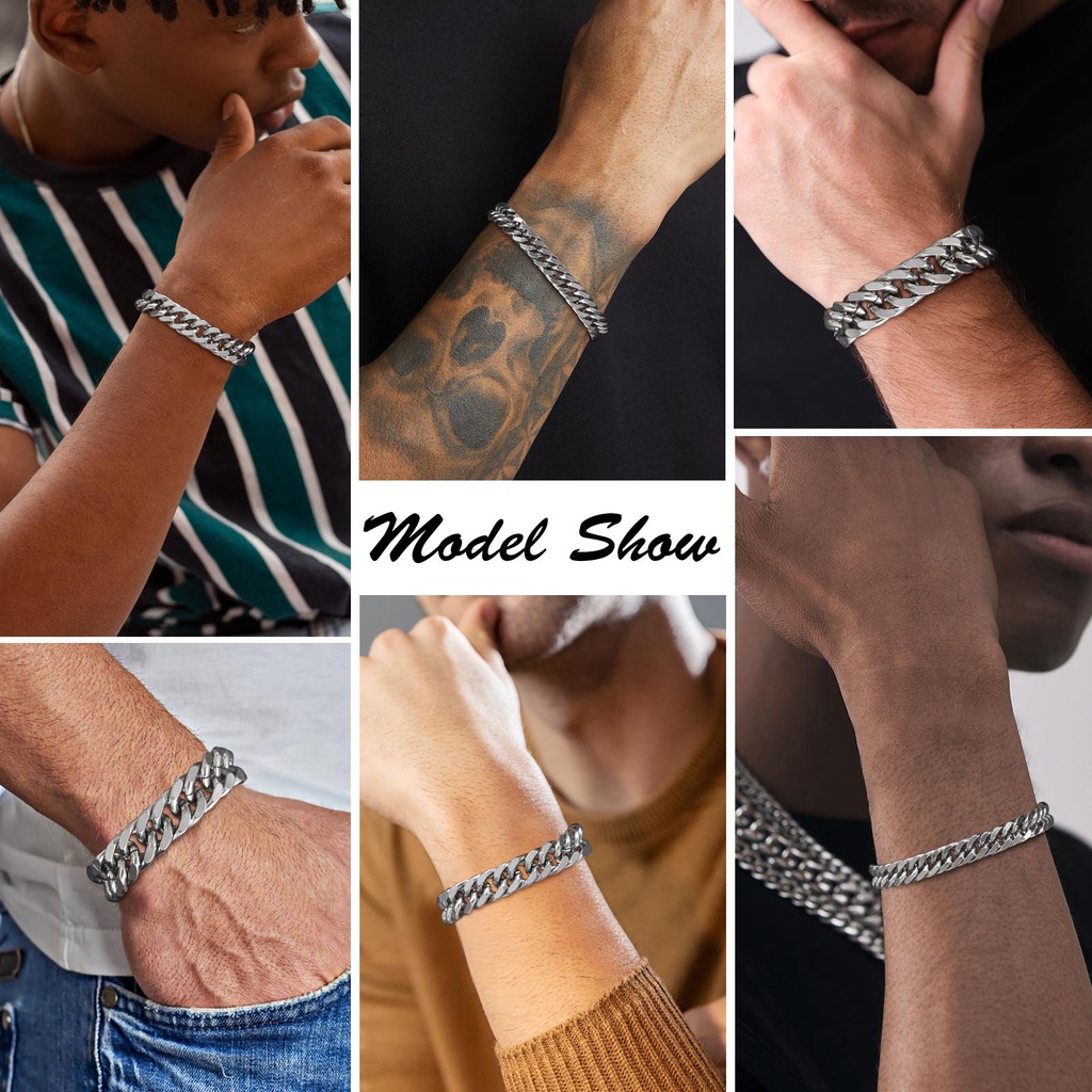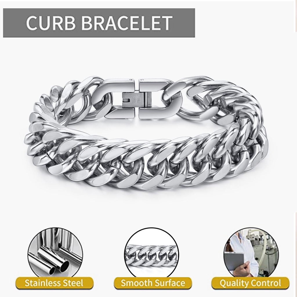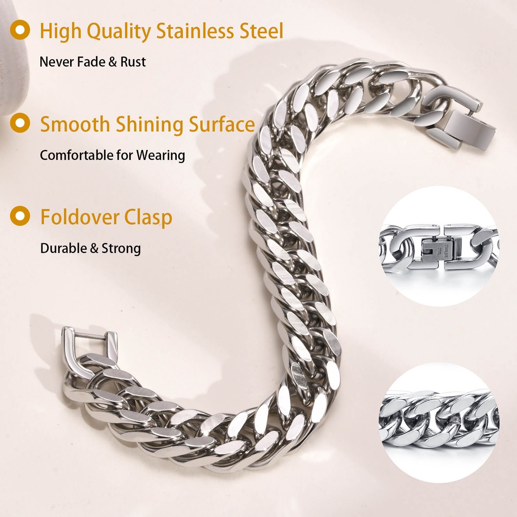 Meaeguet Silver Men Bracelet Stainless Steel Cuban Chain Bracelet 8/10/12/15MM Jewelry Accessories