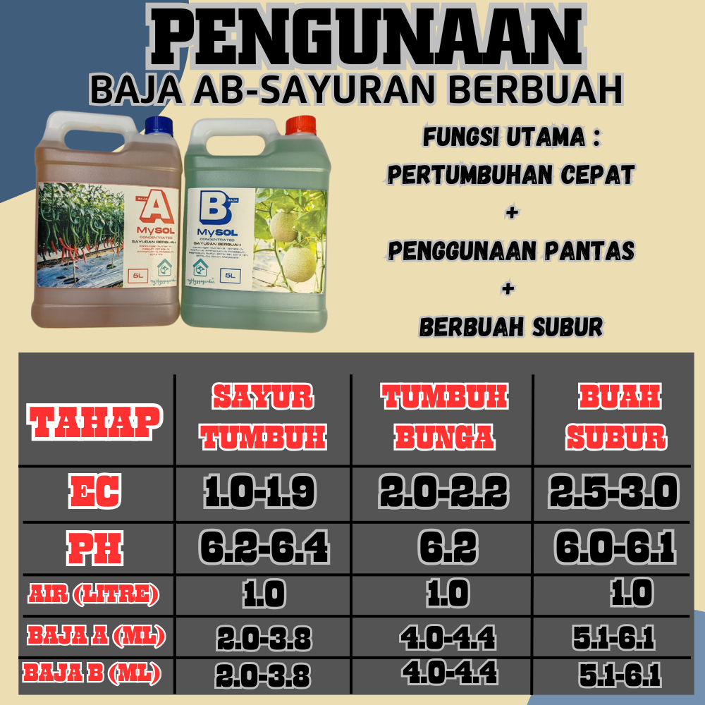 MELLOWMART [10L] [MYSOL]Water Soluble Liquid AB Set Fertiliser Fertigation Hydroponic | Pati Baja AB Fertigasi Hidroponi