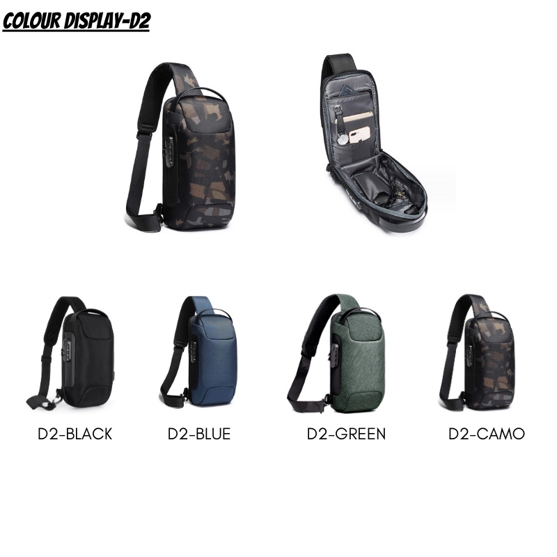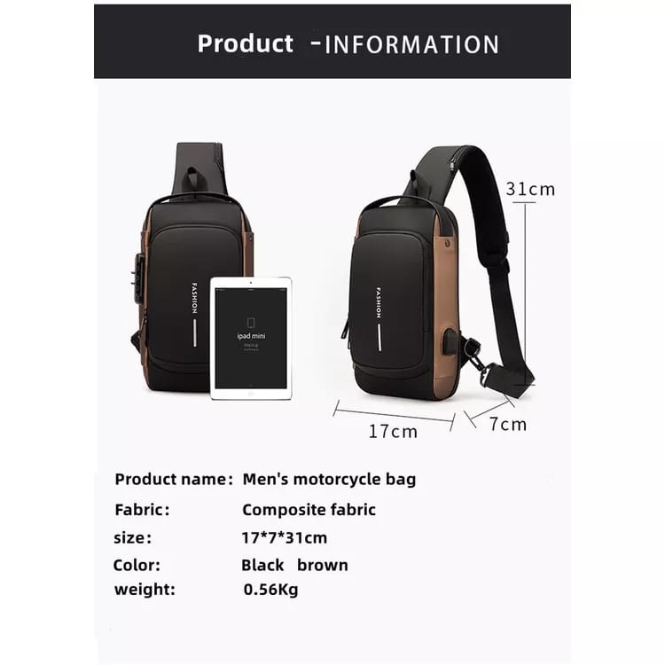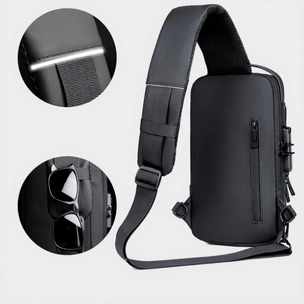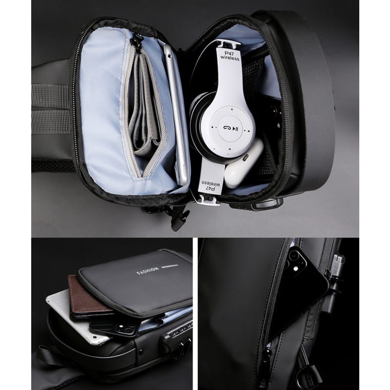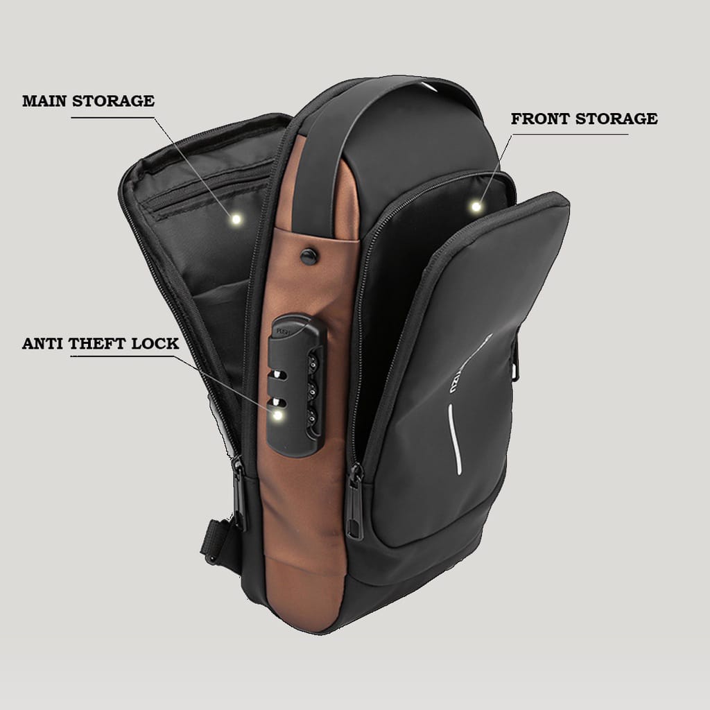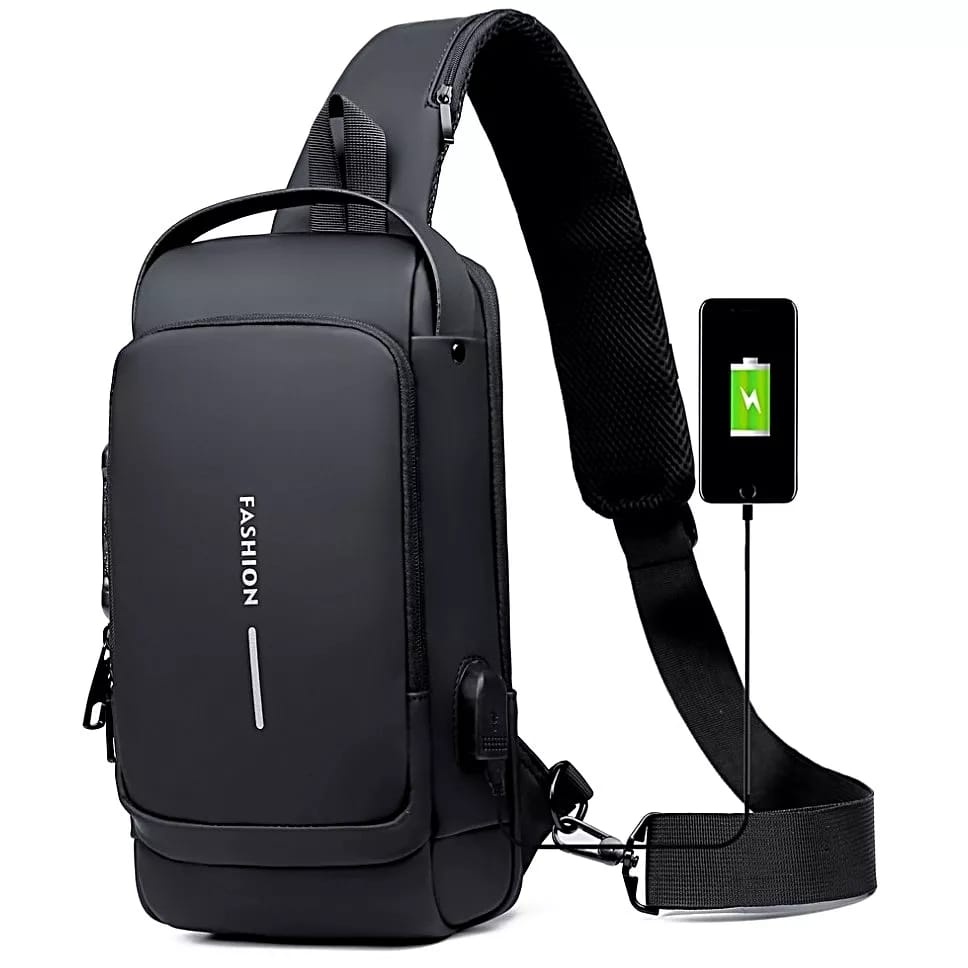Men Anti-theft Lock Sling Bag Fashion Chest Pack Waterproof USB Crossbody Bag