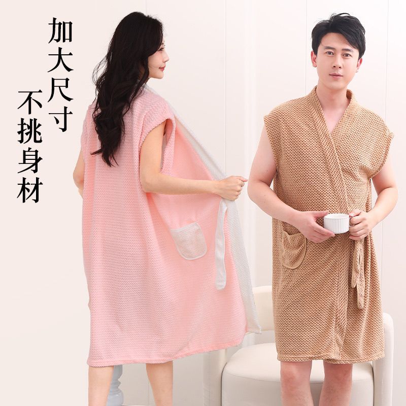 Men Bathrobe Wearable Couple Bath Skirt Nightgown Women Absorb Water Bath Quick-Drying Bath Towel Men Women Absorb Water