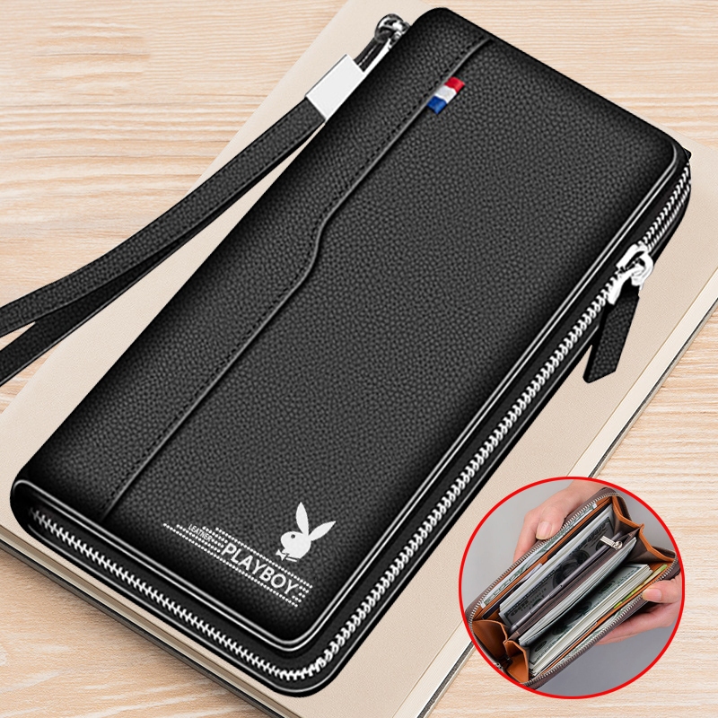 Men Bifold PU Leather Long Zipper Wallet Card Holder Short Wallet for Man Multi-Card Men's Zipper Coin Purse Dompet Lelaki Pendek Zip Beg Duit Syiling Purse Men