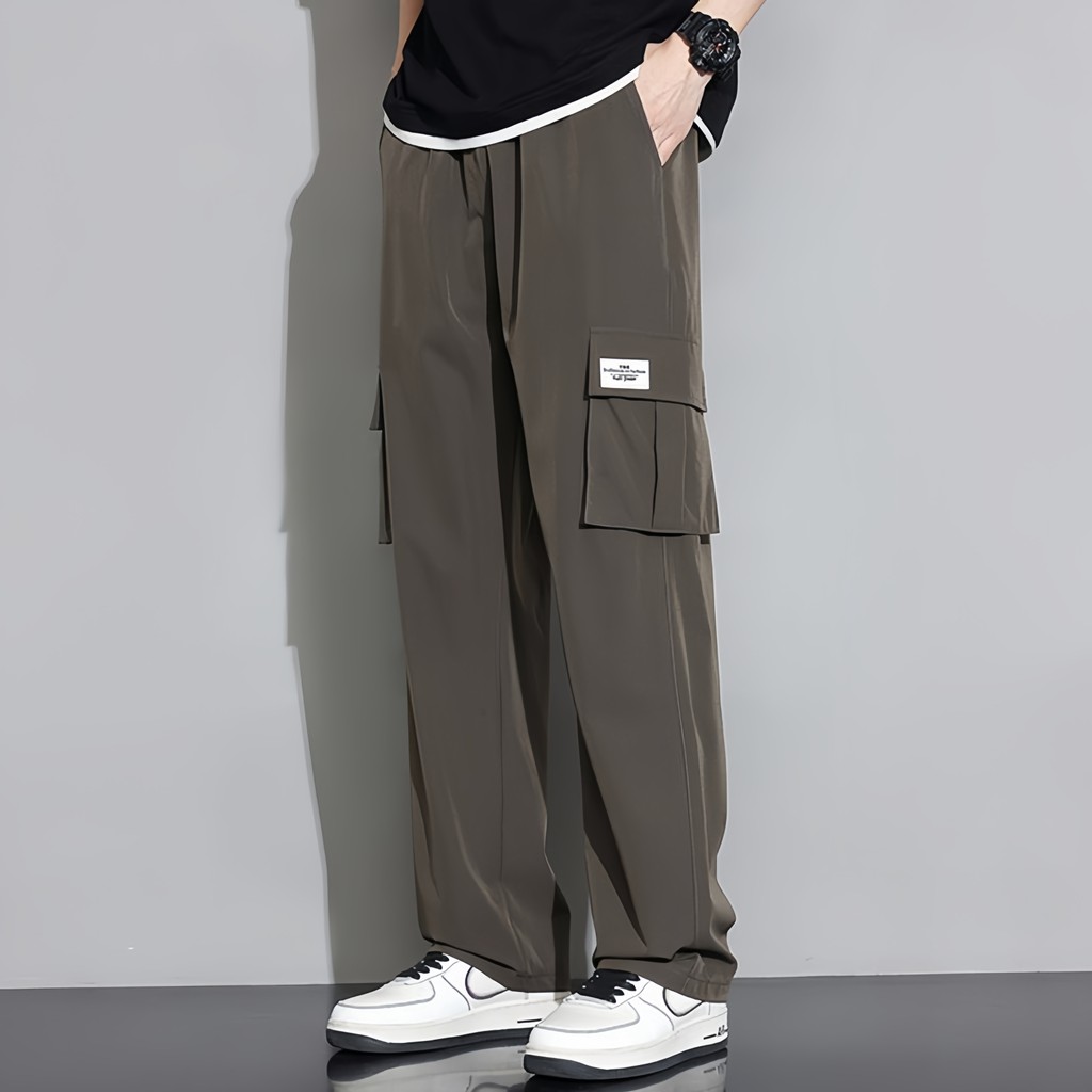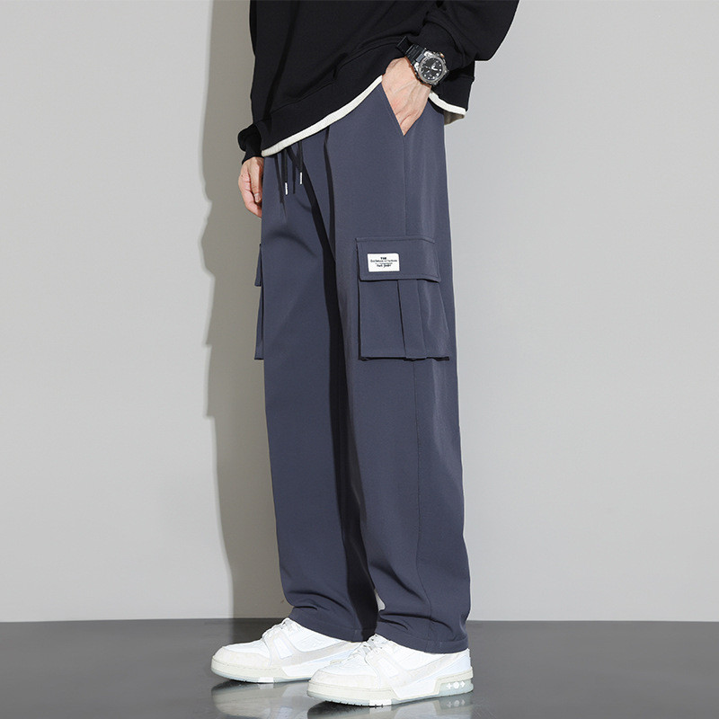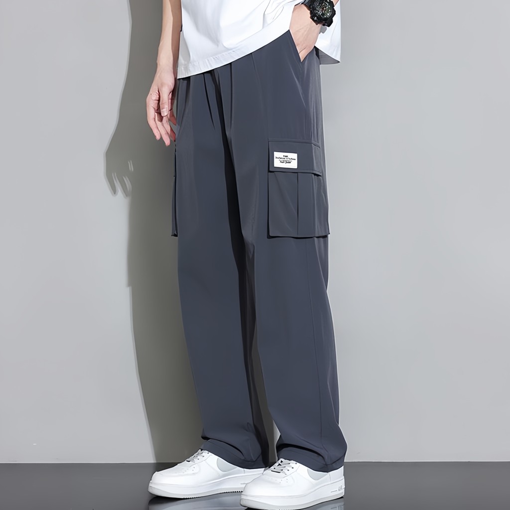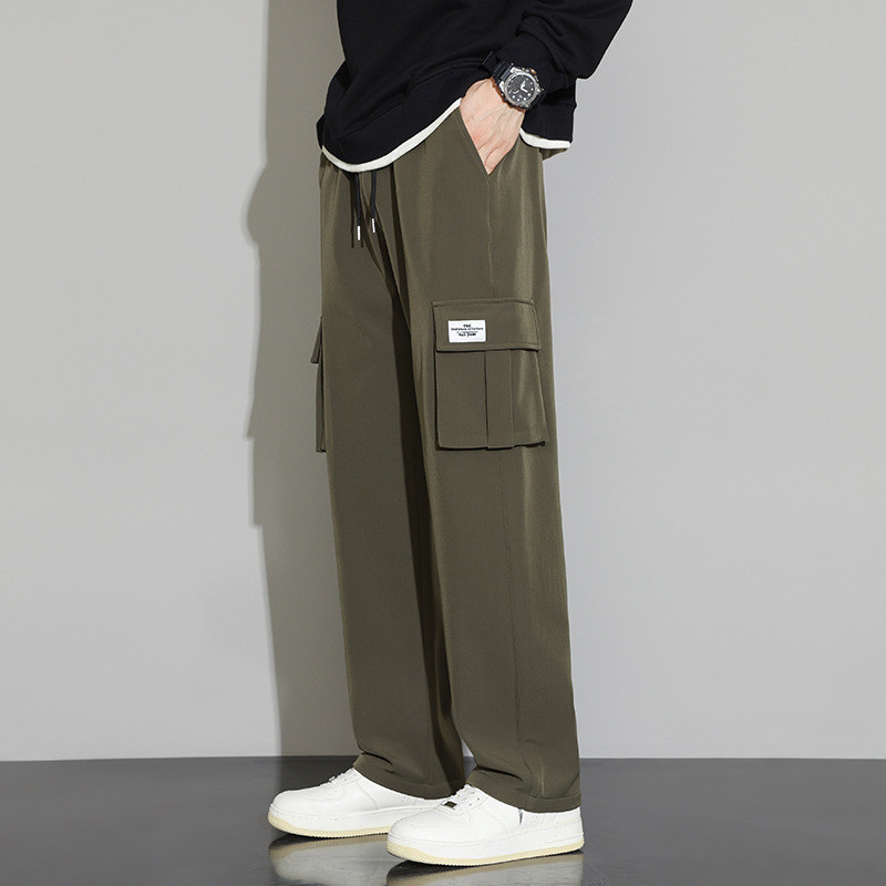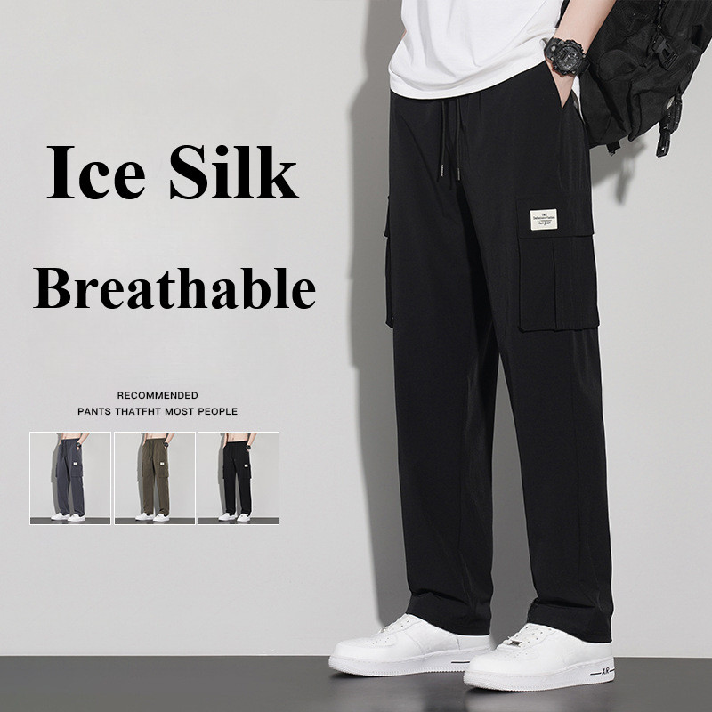 Men Cargo Long Pants Big Functional Pocket Trousers Seluar Panjang Lelaki cargo pants men Ice Slik Drawstring Loose Cool and Comfortable Pants Seluar Kargo Lelaki