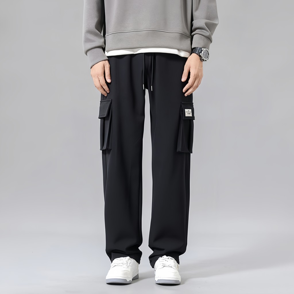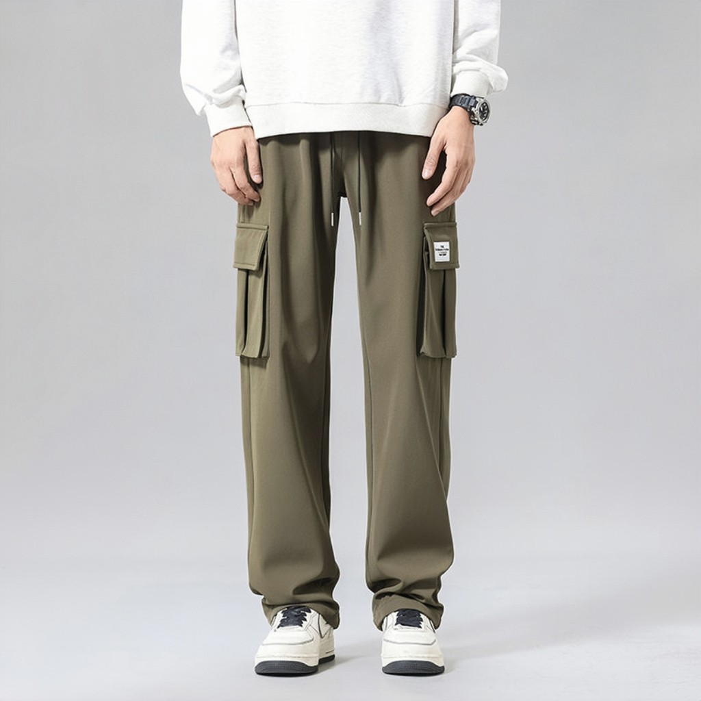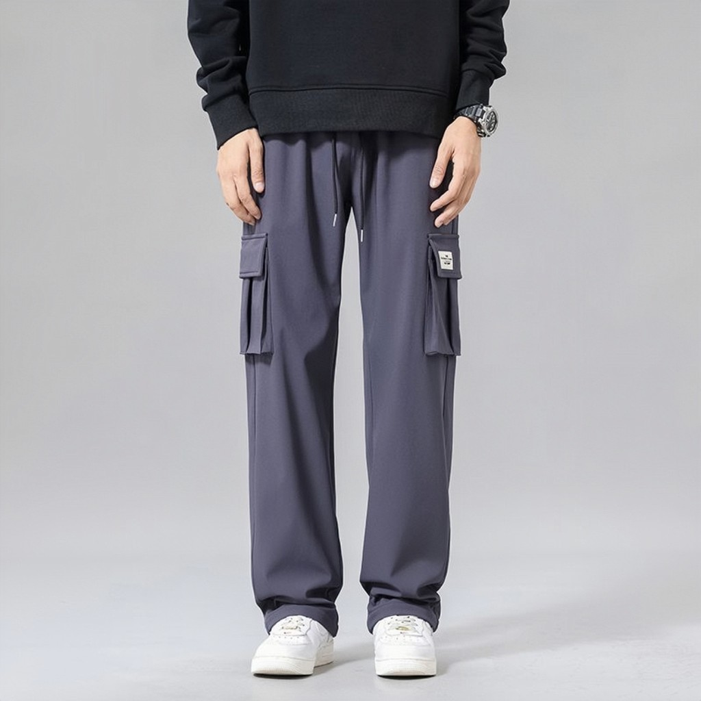 Men Cargo Long Pants Big Functional Pocket Trousers Seluar Panjang Lelaki cargo pants men Ice Slik Drawstring Loose Cool and Comfortable Pants Seluar Kargo Lelaki