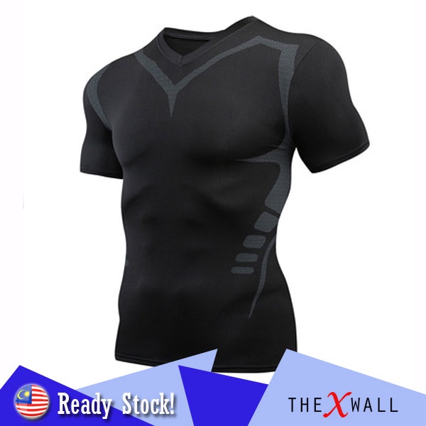 Men Compression Tight Gym Shirt Cool Dry Long Short Sleeve Fitness Baju Ketat Lengan Panjang Pendek Sukan 健身衣 紧身衣