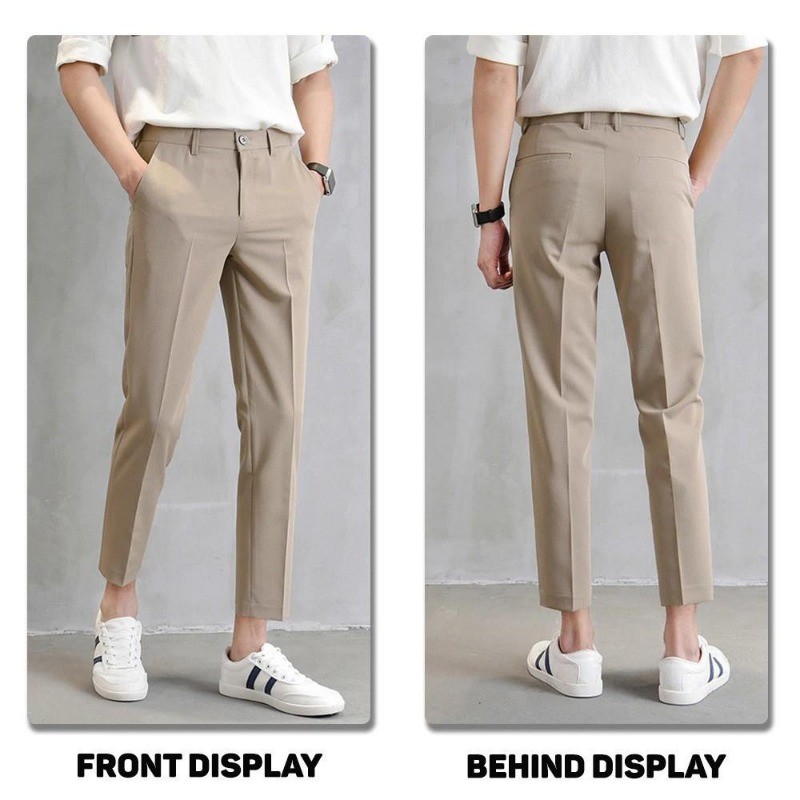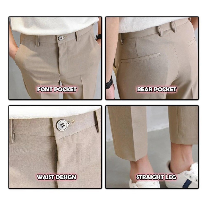 Men Long Suit Pants Cropped Business Trousers Formal Regular Fit Casual Comfortable Office Wear Slim Fit