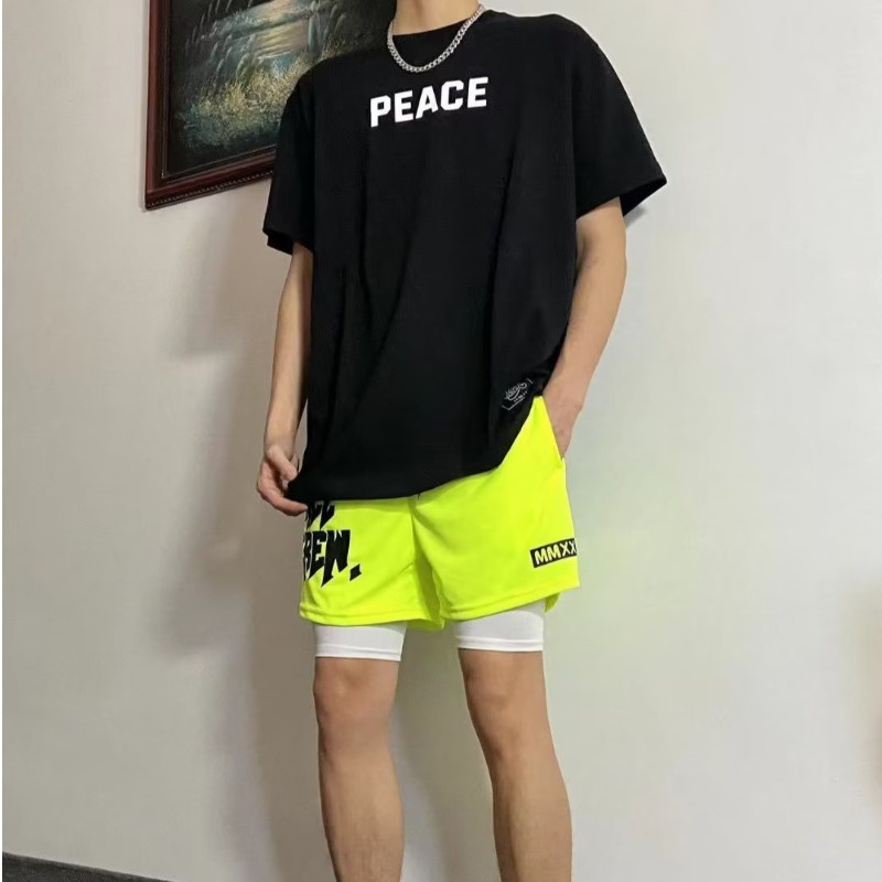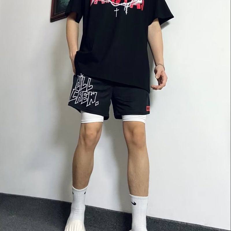 Men's American Basketball Shorts Mesh Shorts Basketball Pants Flame Shorts Trend Street Letter Printed Shorts Above Knee Hip Hop 美式短裤 篮球裤Summer Quick-drying Loose Basketball Short Pants Green\ Black
