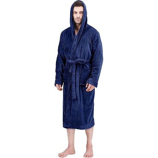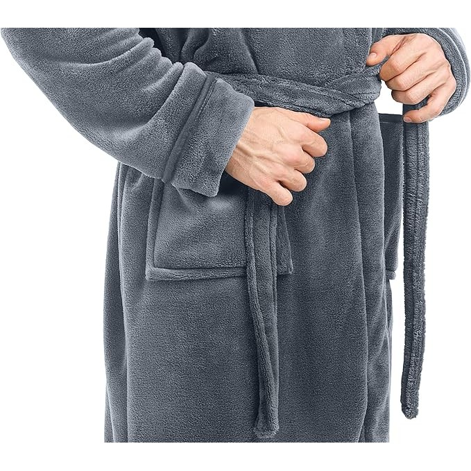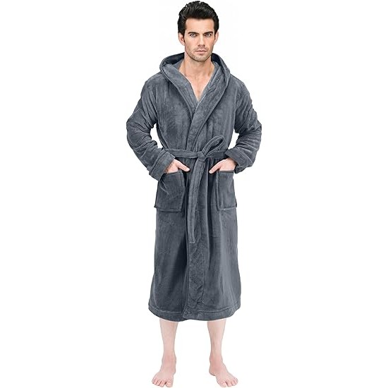 Men’s Basic Shawl Collar Fleece Bathrobe | Hooded & Non-Hooded | Soft, Warm, Spa & Hotel Loungewear