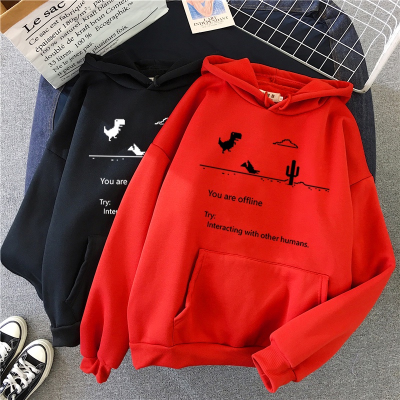 Men's Casual Oversize Trend Pixel Dinosaur World Hoodies Korean Long Sleeve Pullovers Thicken Multicolor Couple Winter Hooded Jacket