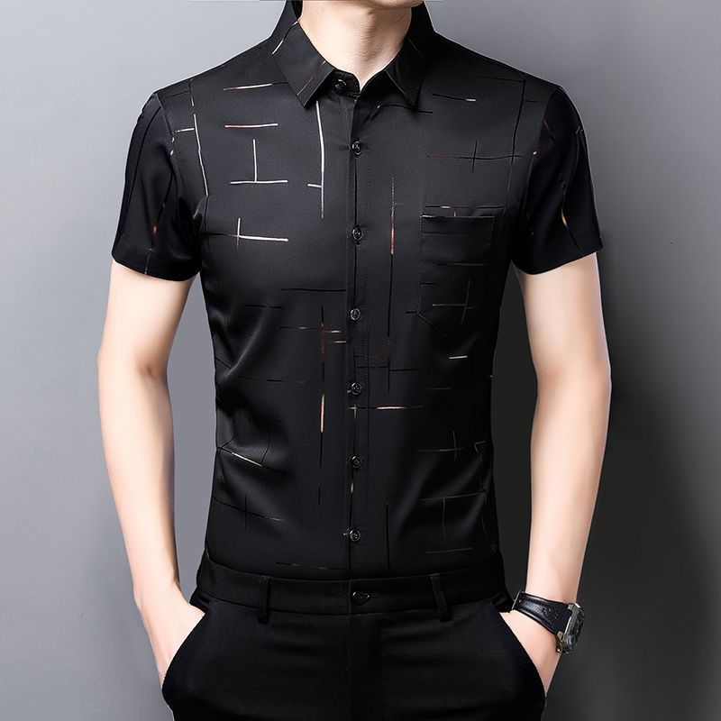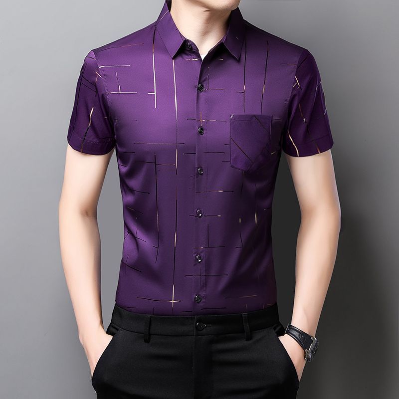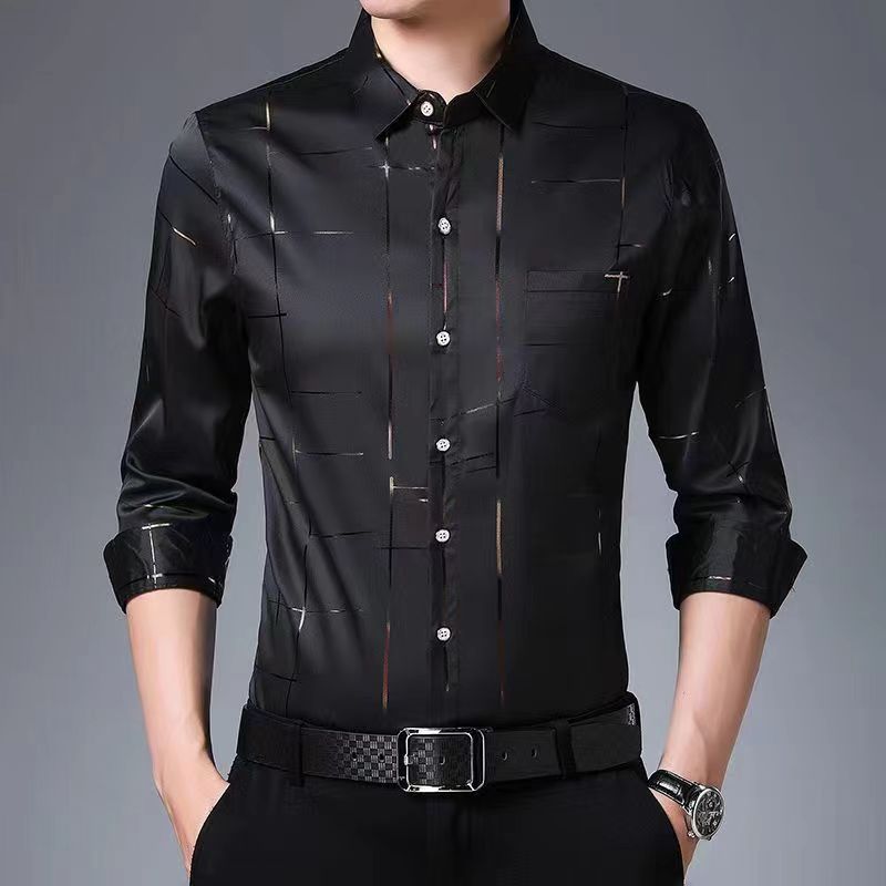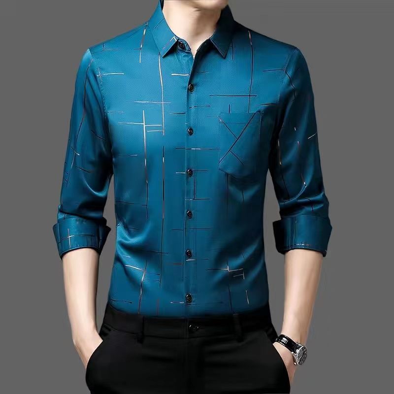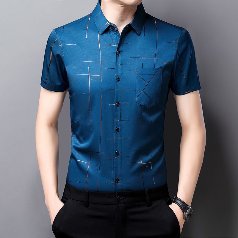 Men's Checked Long Sleeve Shirts Striped Short Sleeve Casual Shirt Work Business Printed Shirts