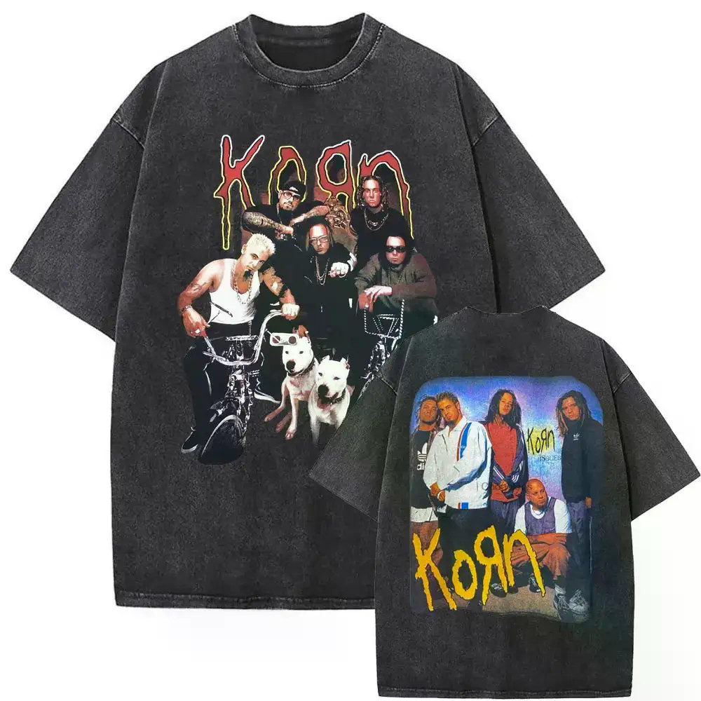 Men's clothing washed t -shirts vintage rock band Korn ftl 25 follow