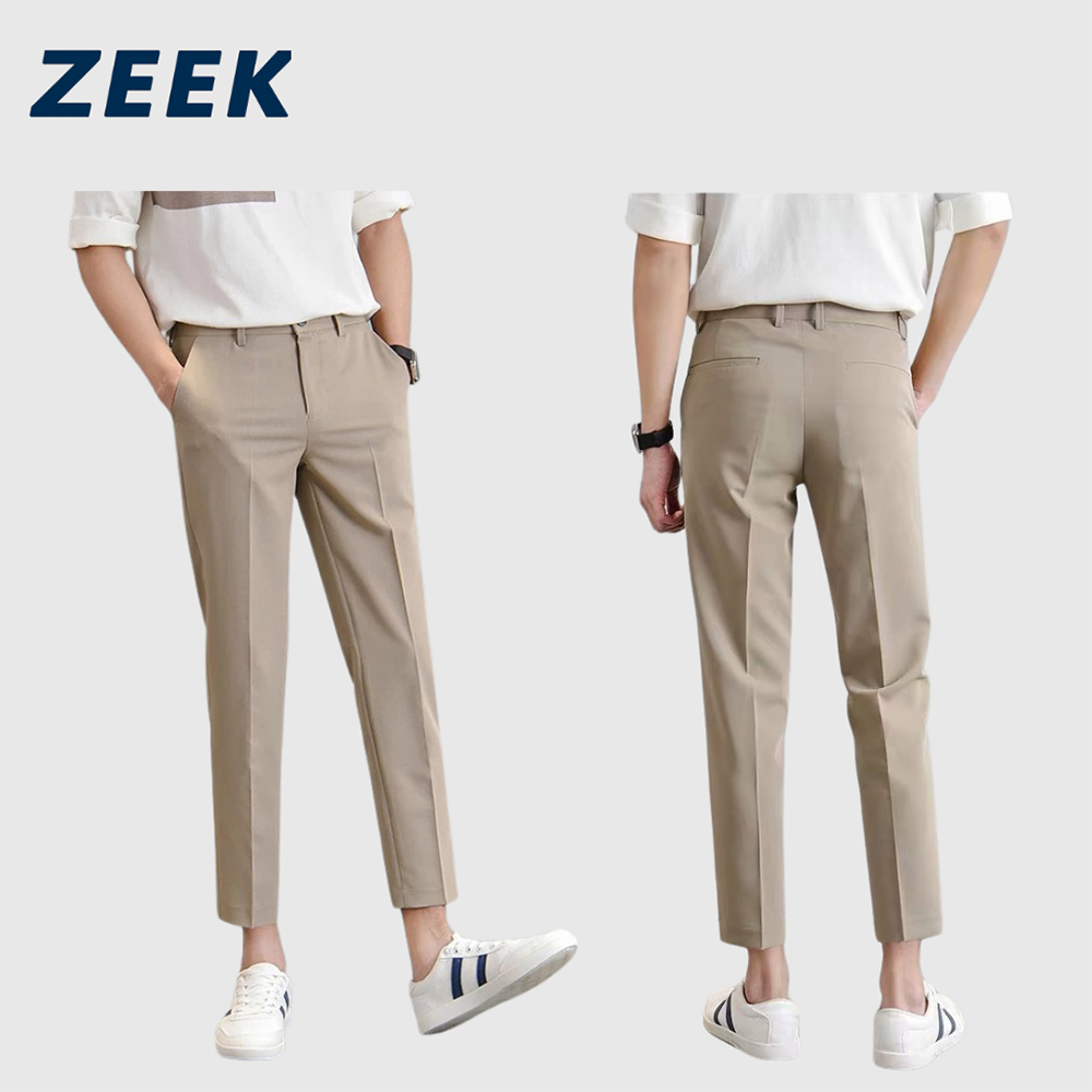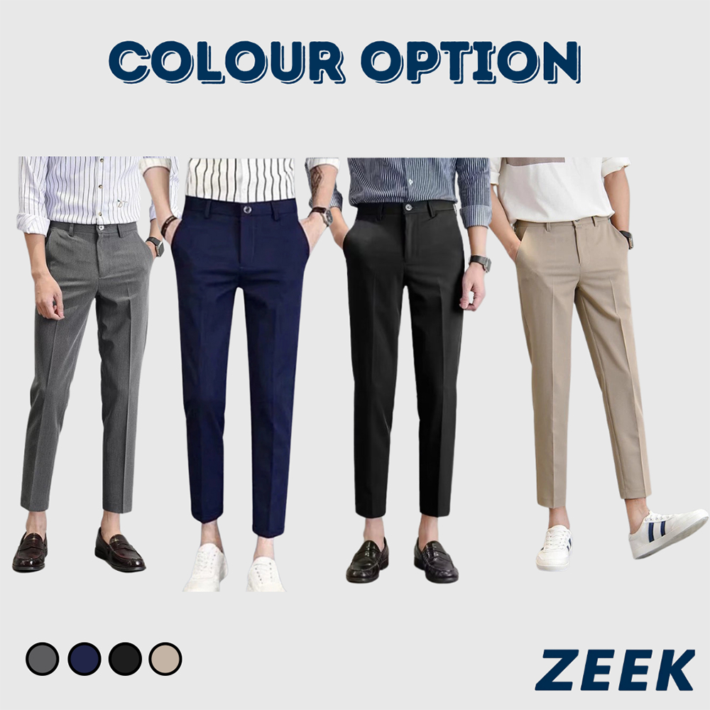 Men's Cropped Formal Casual Trousers Regular Fit Casual Business Pants Seluar Panjang Lelaki