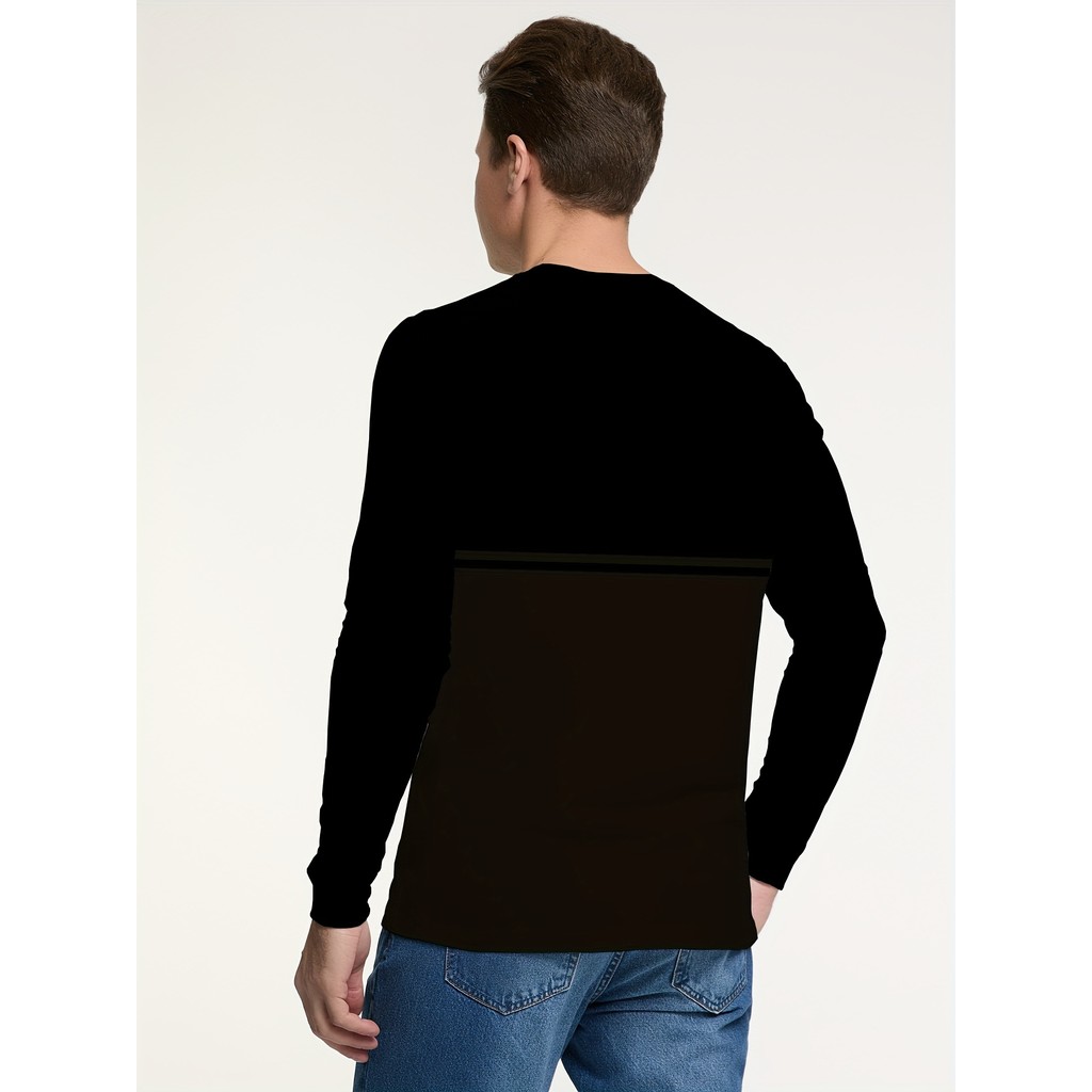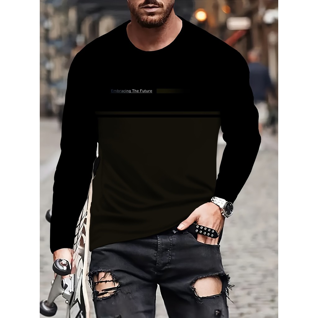Men's Futuristic Digital Print Long Sleeve T-Shirt – "Embrace the Unknown" Design, Soft & Breathable Fabric, Stylish Black Casual Top for All Seasons, Urban Streetwear | Modern Cas