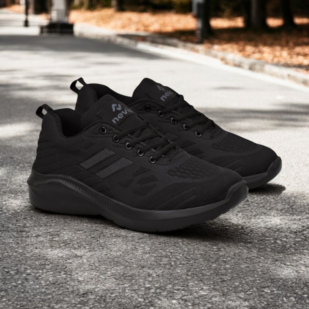 Men's Jumbo Big Size 39-49 Nevis Hugo Full Black Plain Black Sport Running School Work Shoes for Men
