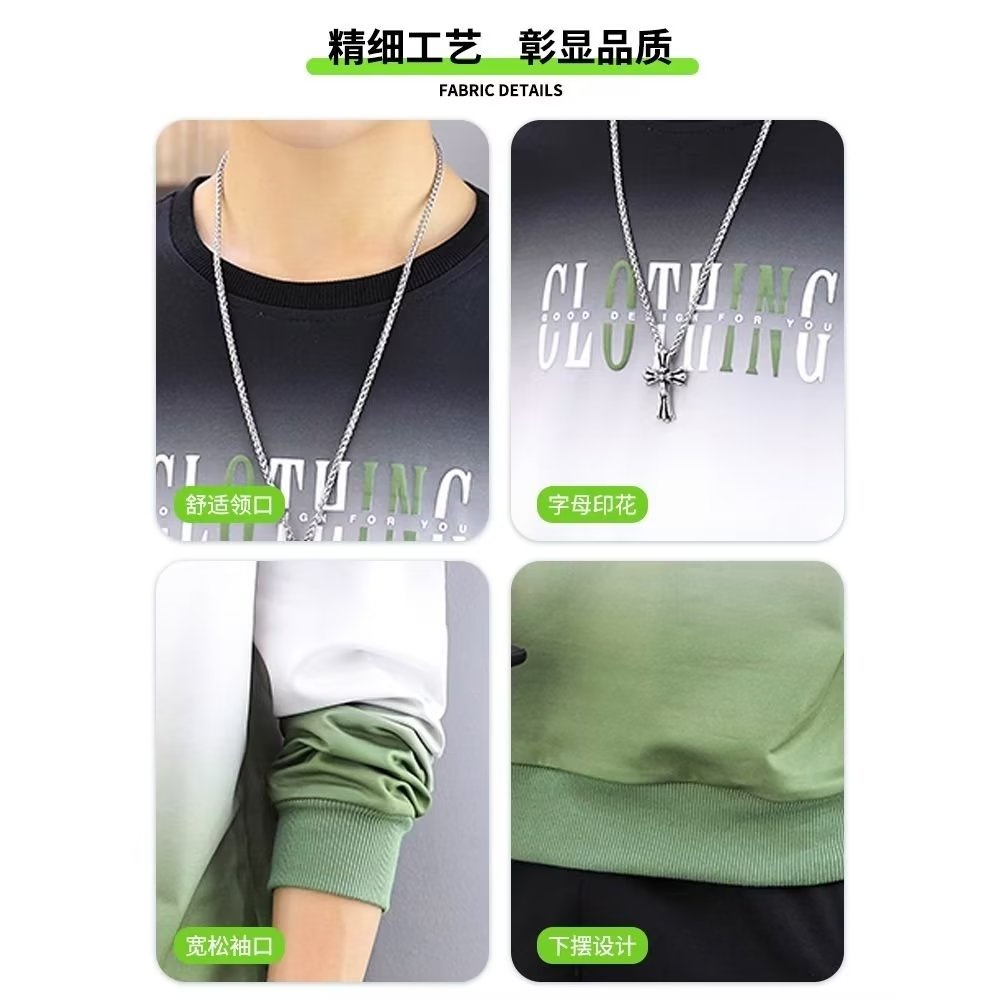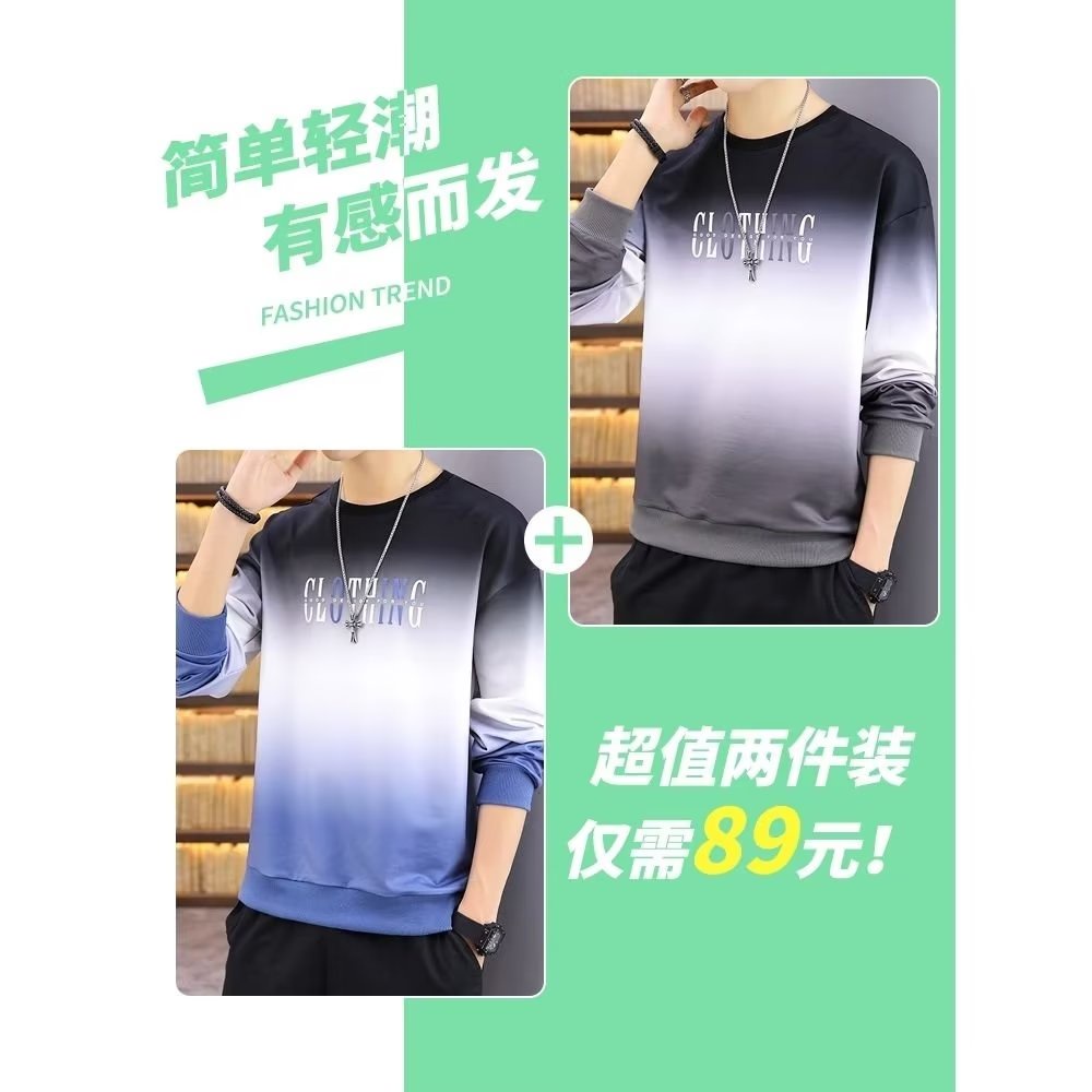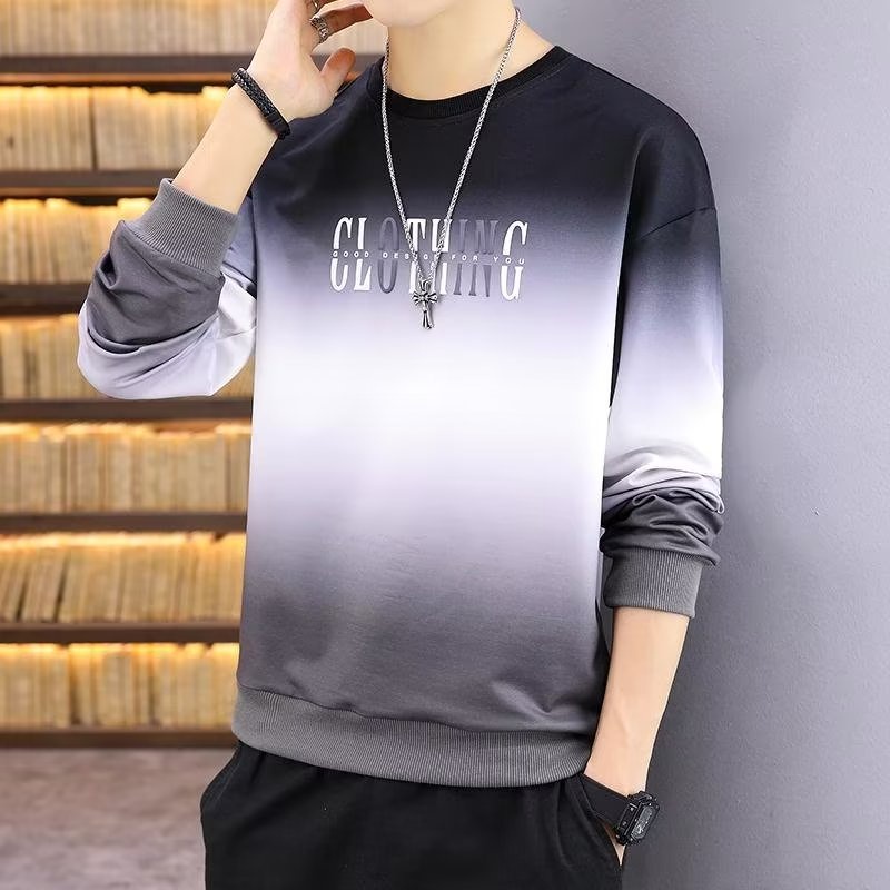 Men's Long Sleeve T-shirt Loose Round Neck Gradient Trend Casual Men Jacket