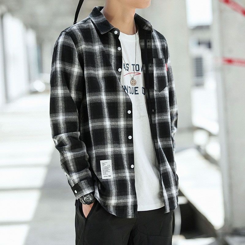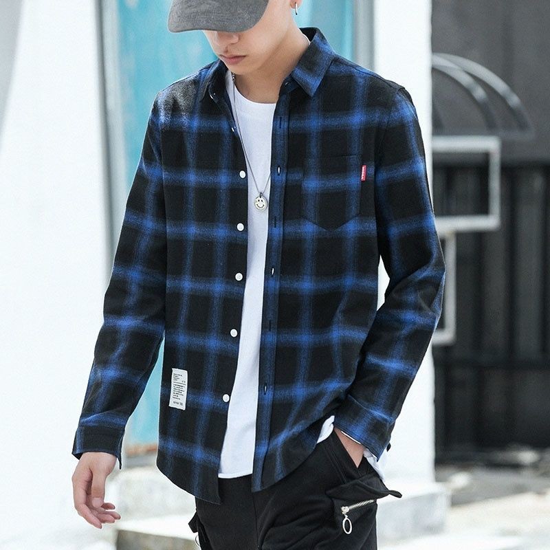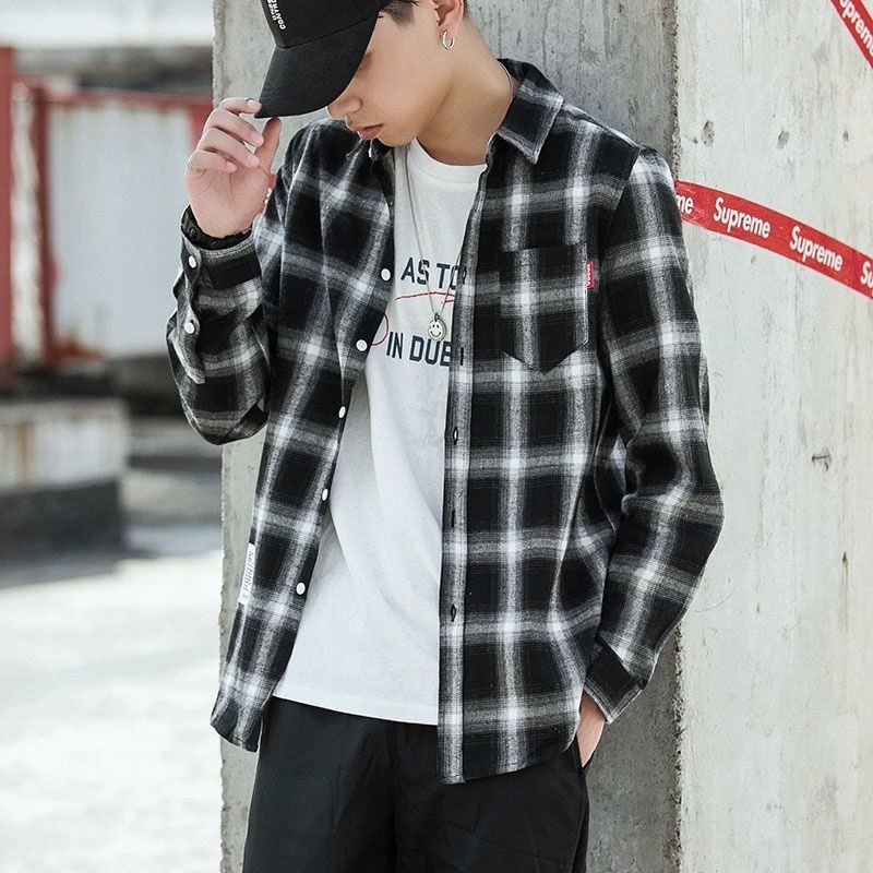 Men's Plaid Shirt Long Sleeve Cotton Casual Shirt Slim Buttons Business Social Shirts Blouse for Men