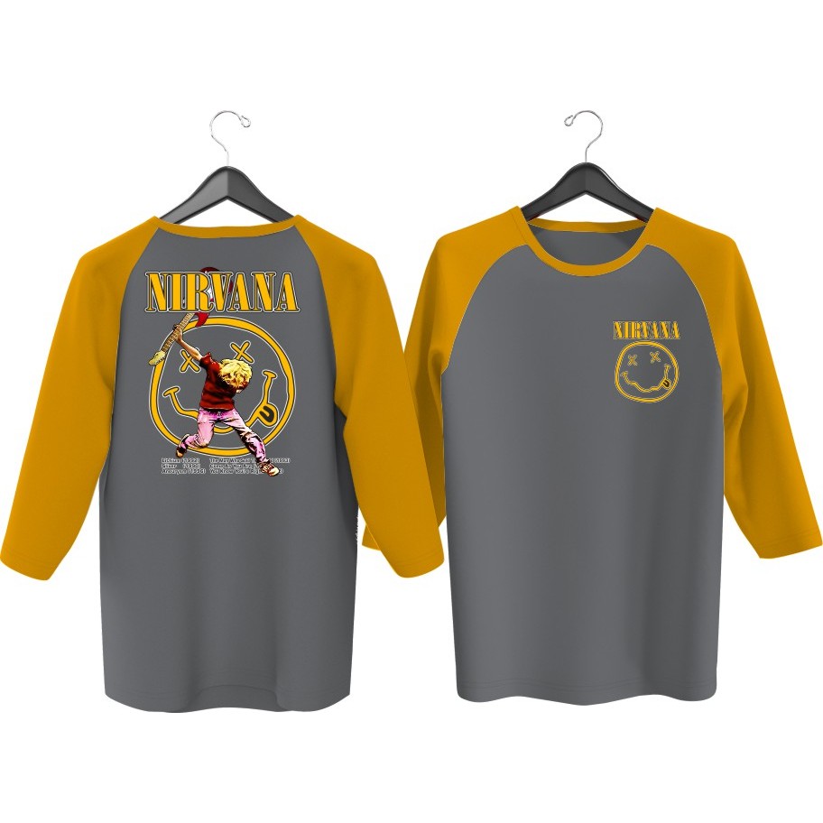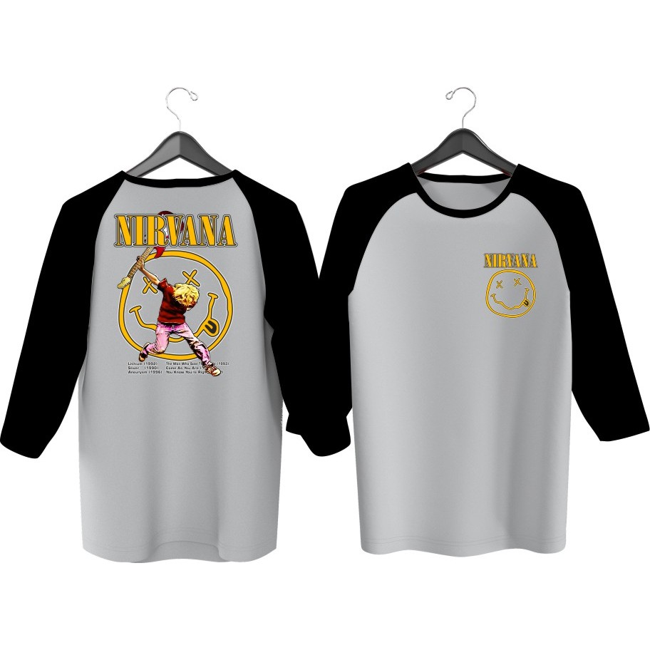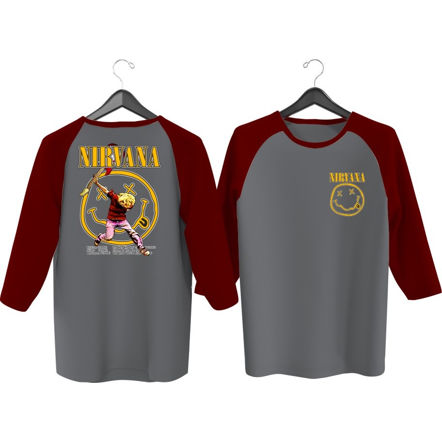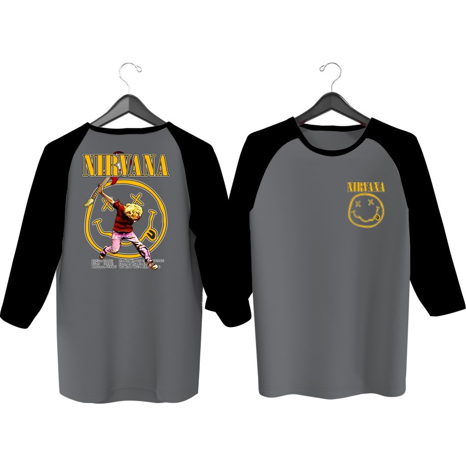 MEN'S RAGLAN T-SHIRT NIRVANA SMILE SCREEN PRINTING FRONT BACK \ MEN'S RAGLAN T-SHIRT LONG SLEEVE MEN'S TOP T-SHIRT/ DISTRO T-SHIRT/ SIMPLE T-SHIRT/ MEN'S T-SHIRT/