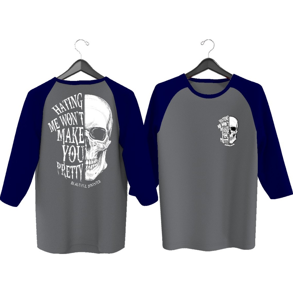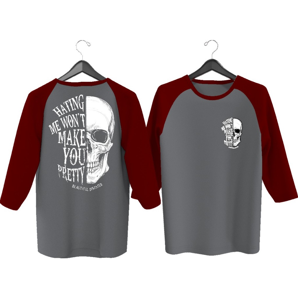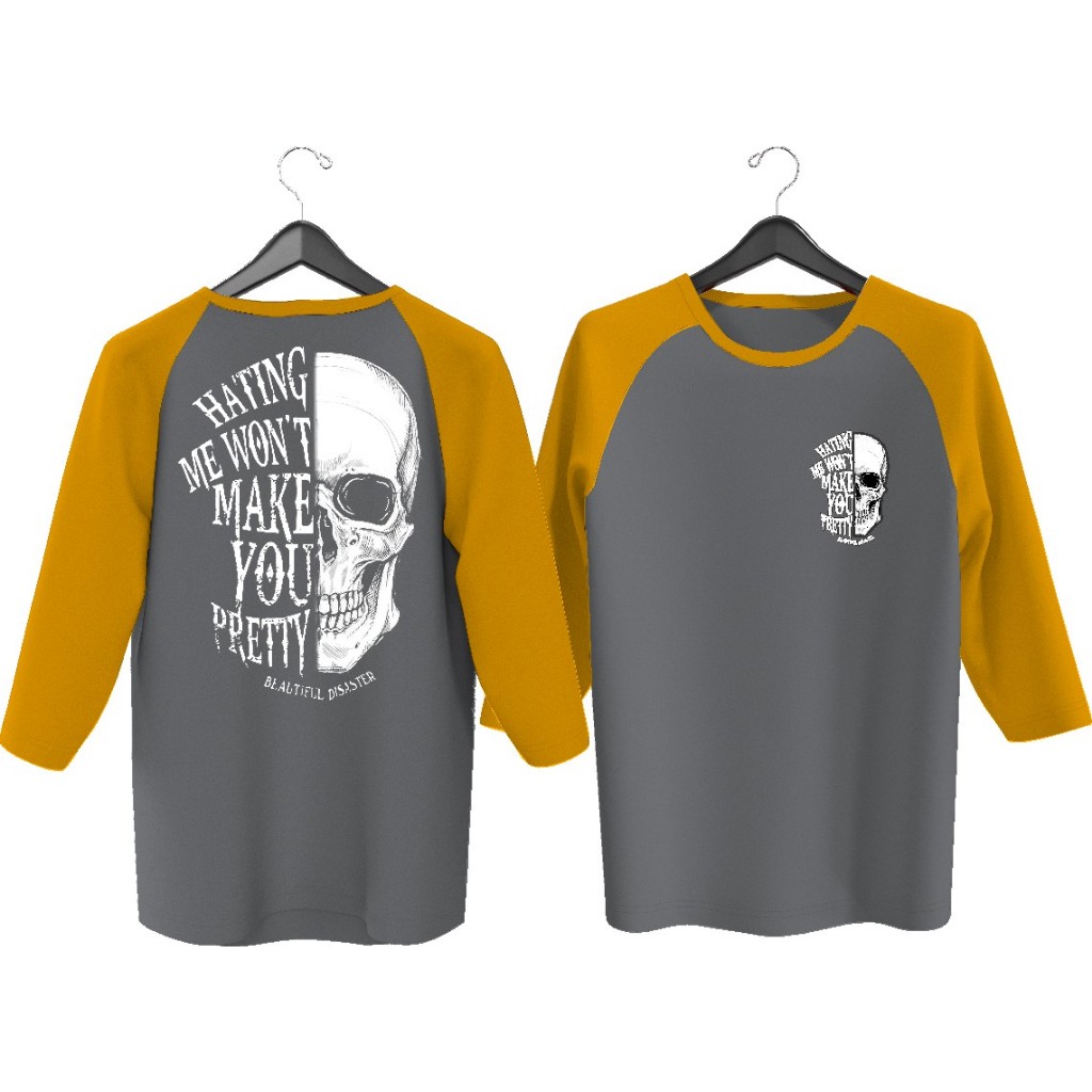 MEN'S RAGLAN T-SHIRT WITH HATING SKULL SCREEN PRINTING M71\ MEN'S RAGLAN T-SHIRT WITH 3\4 SLEEVES, MEN'S TOP T-SHIRT/ DISTRO T-SHIRT/ T-SHIRT/