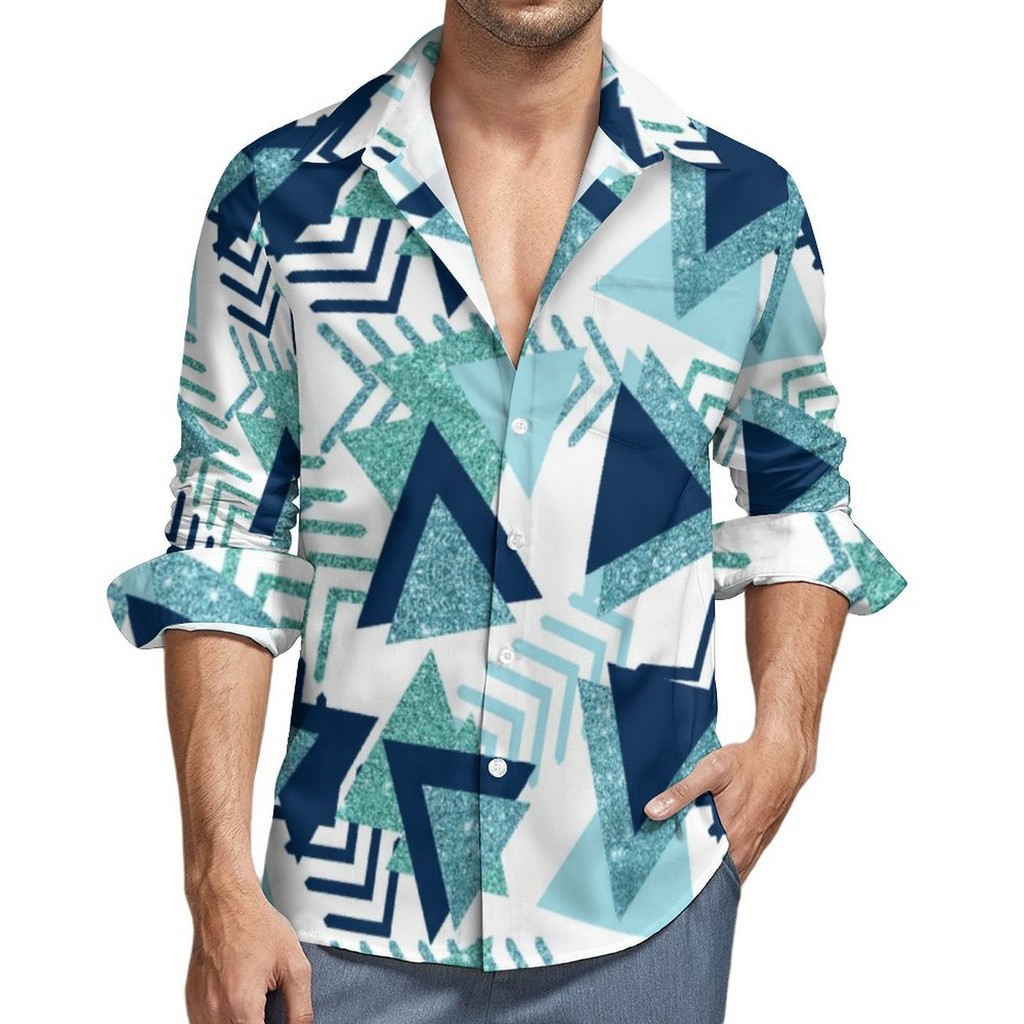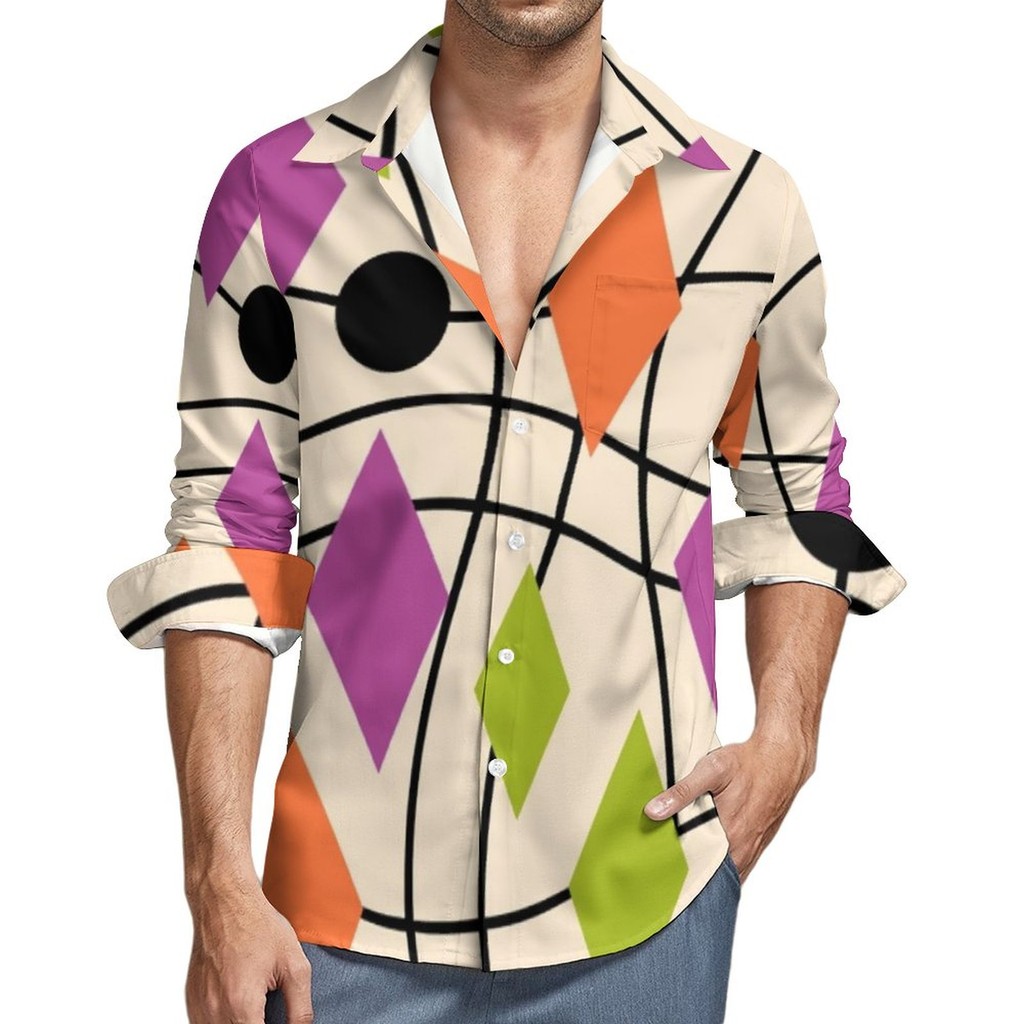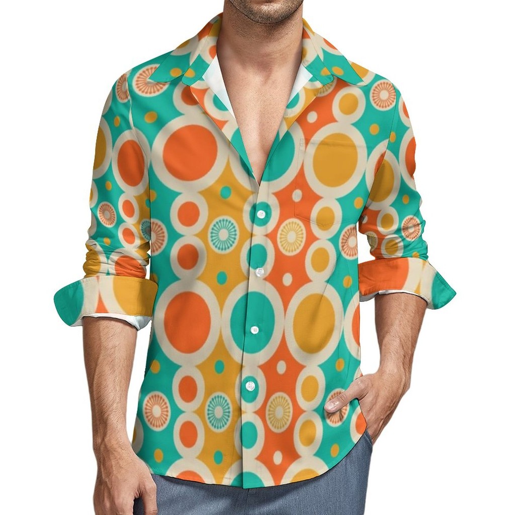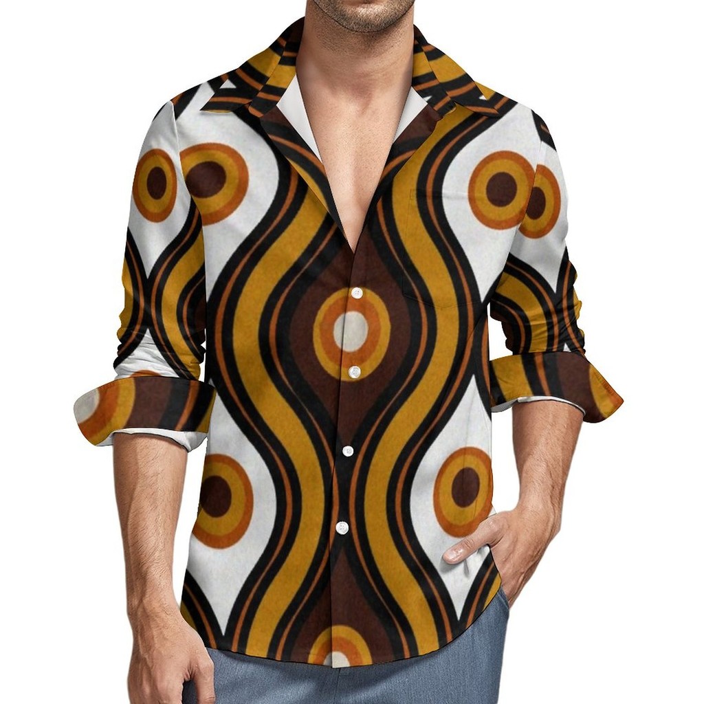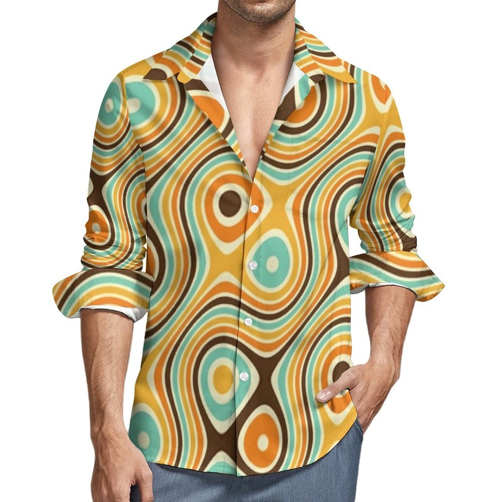 Men's retro casual shirt 60s and 70s style shirt aesthetic loose long sleeve shirt