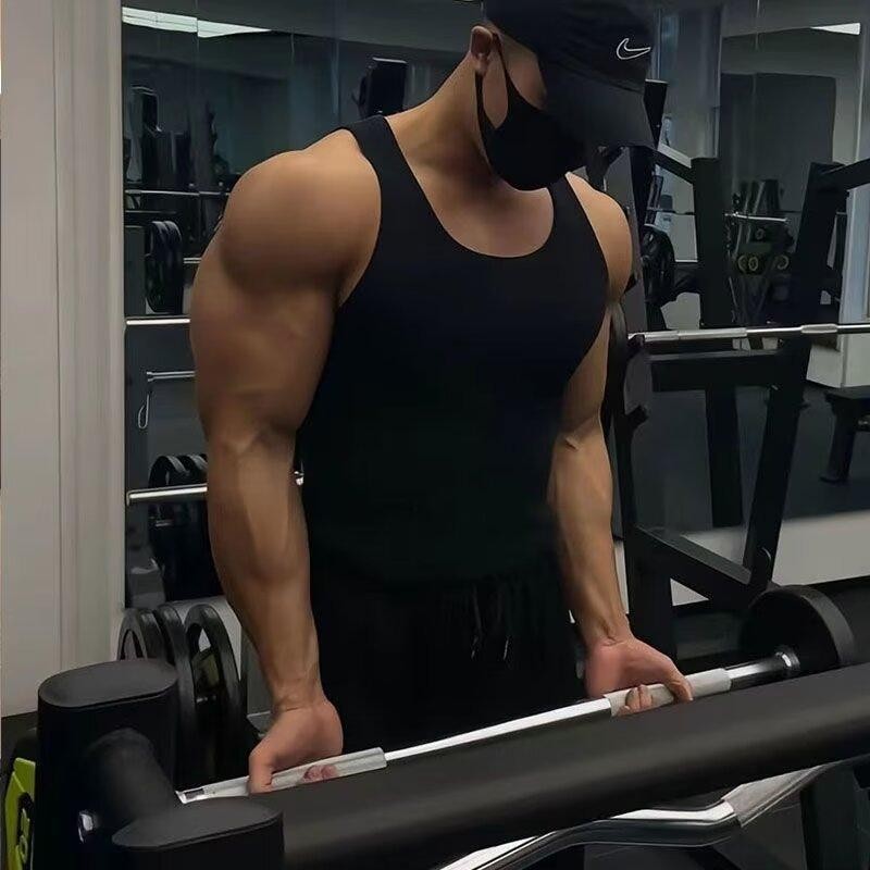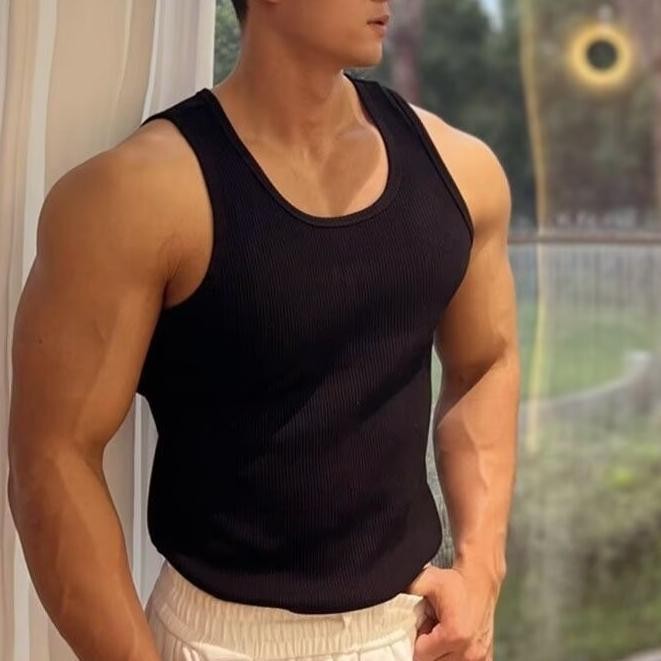 Men's sleeveless fitness clothing, elegant and easy, student cotton tank top, Korean sports style, solid color, suitable for summer wear, breathable, black, white, gray, plus size