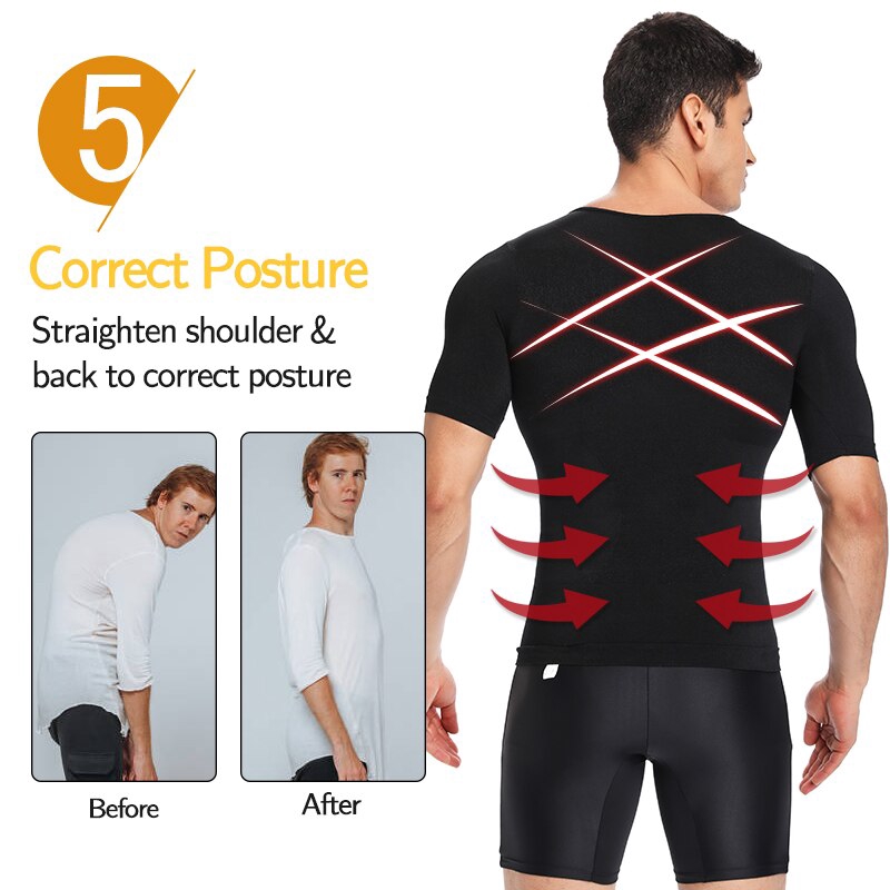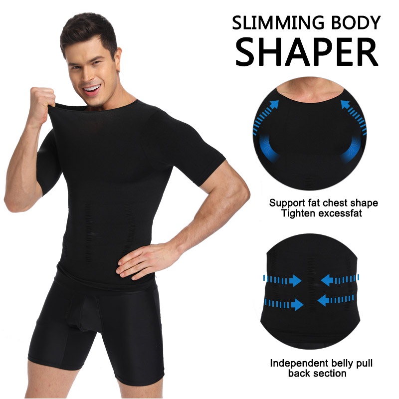 Men's slim fit T-shirt shaping tight fitting short sleeved men's shaping underwear waist fitness training waist belt vest shaping clothes waist shaping clothes