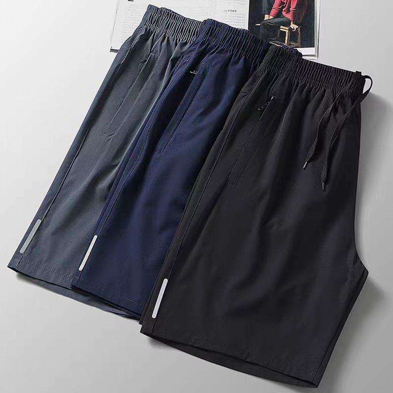 Men's Sports Casual Shorts 2025 New Ice Silk Quick Drying Loose Pants Fashion Beach Shorts with 2 Zipper Pockets