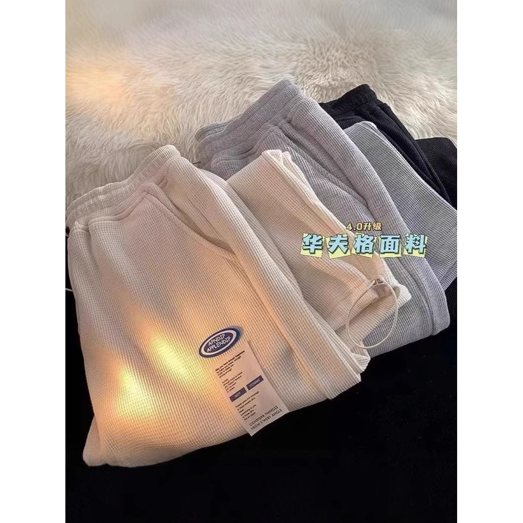 Men's Waffle Sweatpants [M-5XL] – Loose Wide Leg Retro Style Casual Pants with Drawstring (Straight Leg Design)