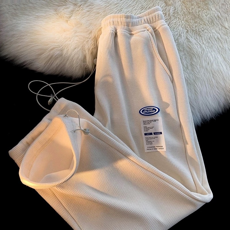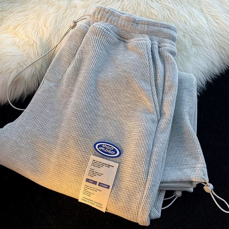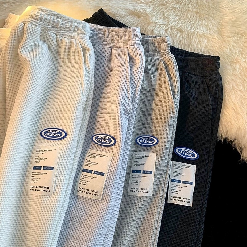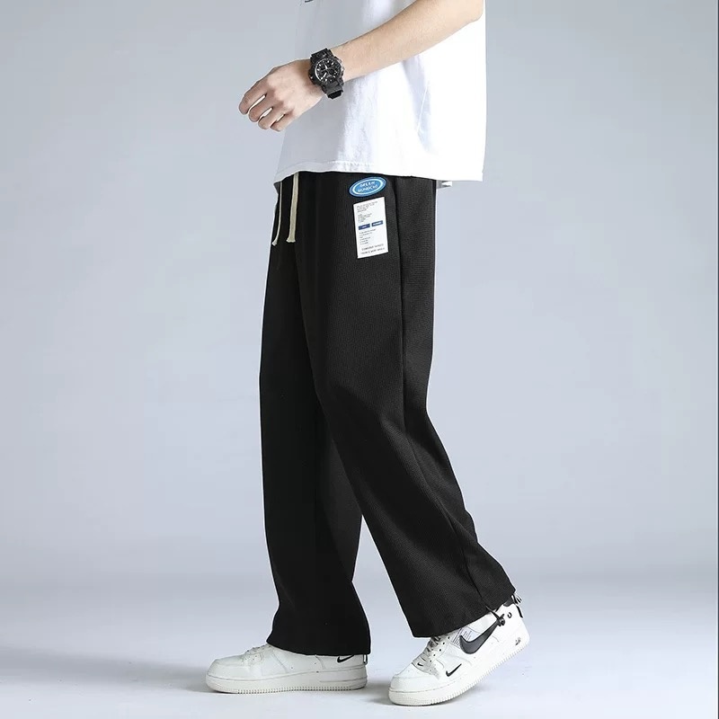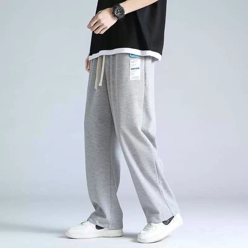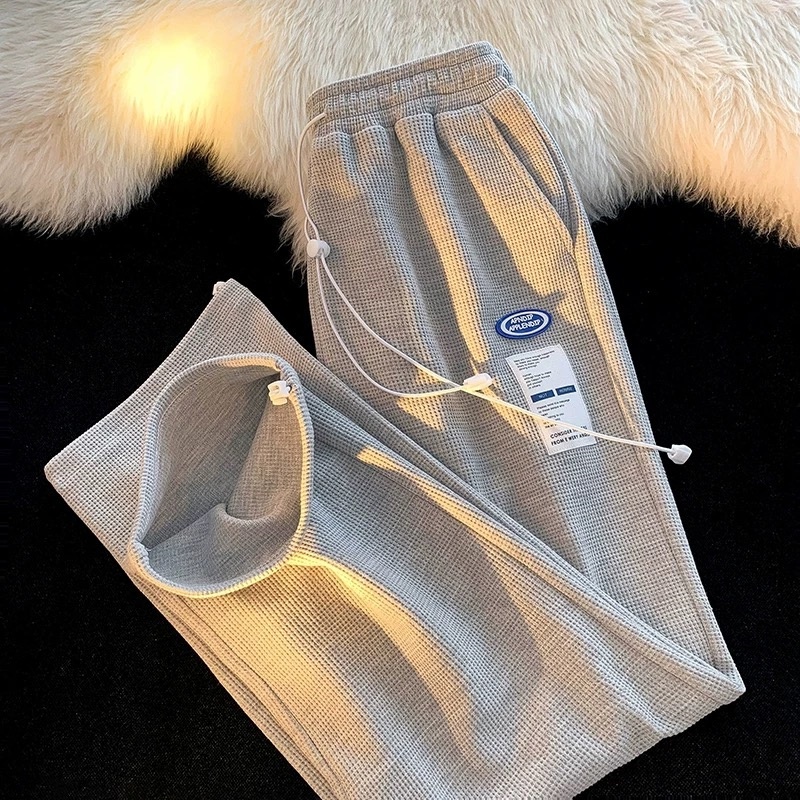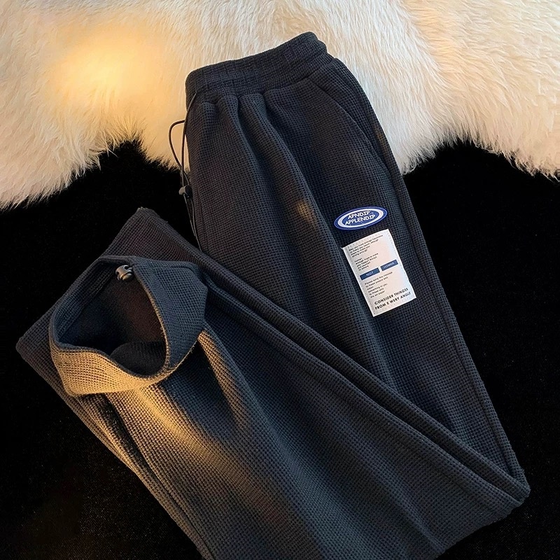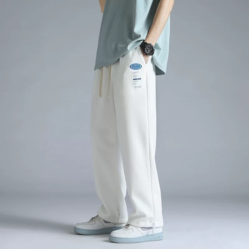 Men's Wide Leg Waffle Straight Tube Loose Sports Casual Long Belt Exquisite Embroidery