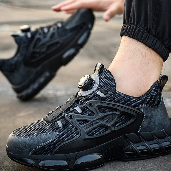 Men Safety Shoes Steel Toe Anti-puncture Steel Toe Sneakers Lightweight Breathable Safety Boots in Black