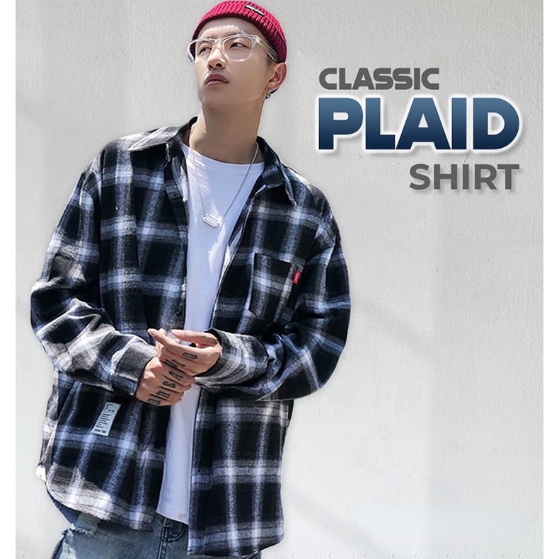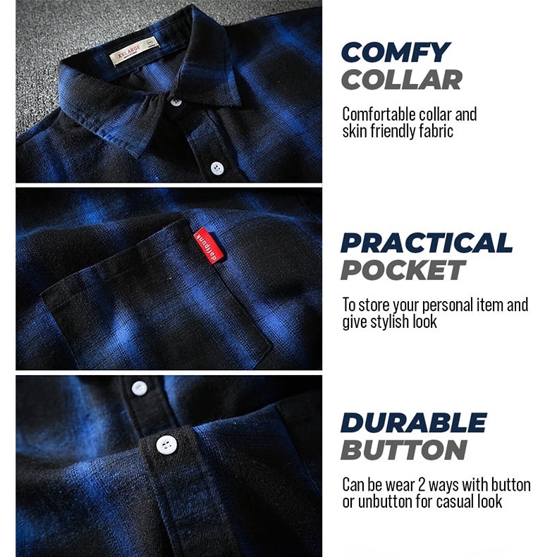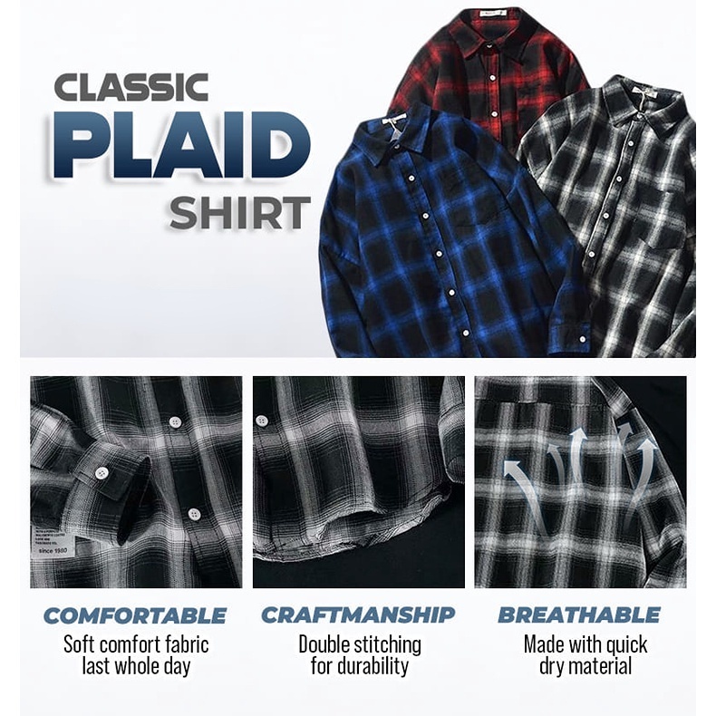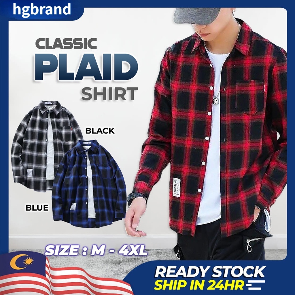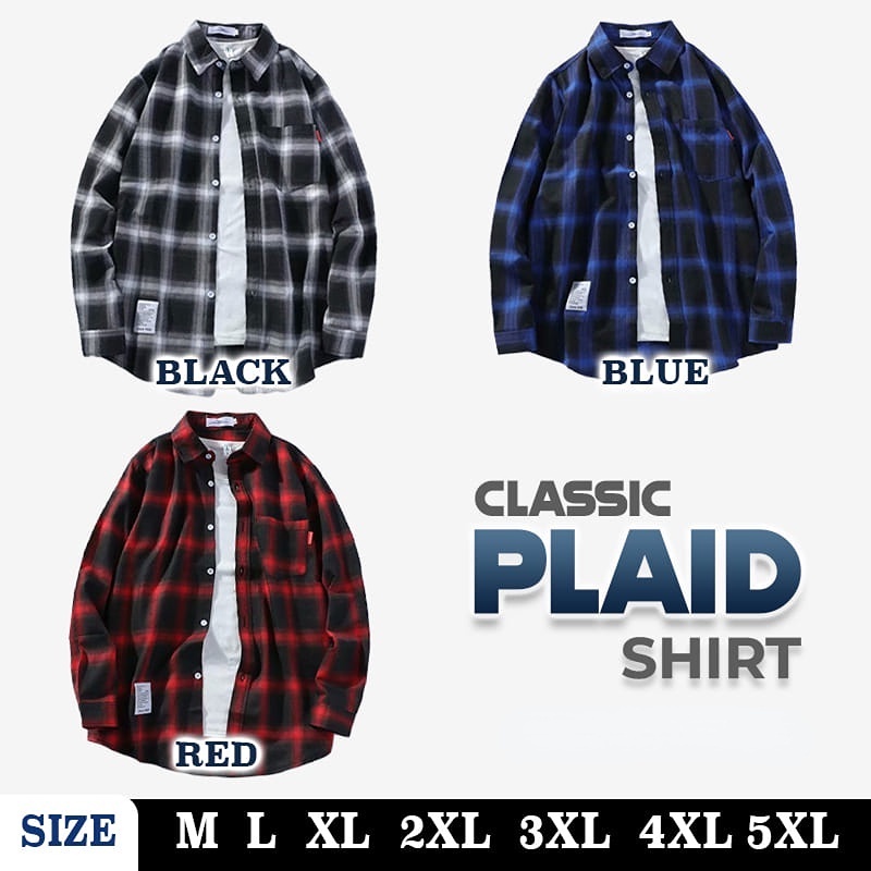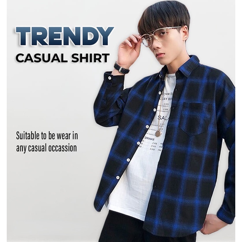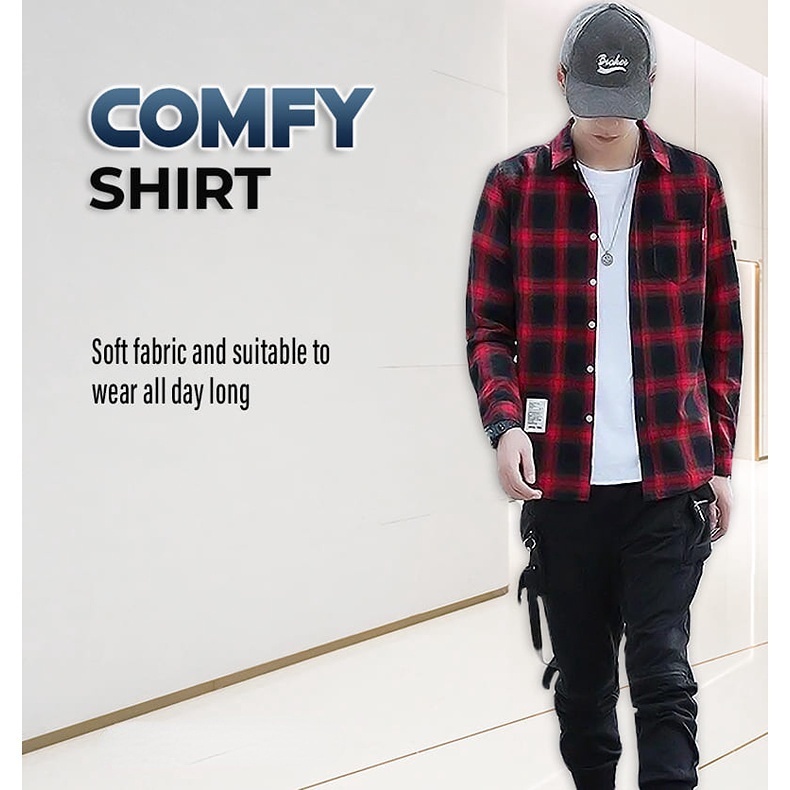 Men Shirt Checker Shirt Trendy Korean Style Top Baju Lelaki Kemeja Lelaki Black Blue Red Shirt MT 016