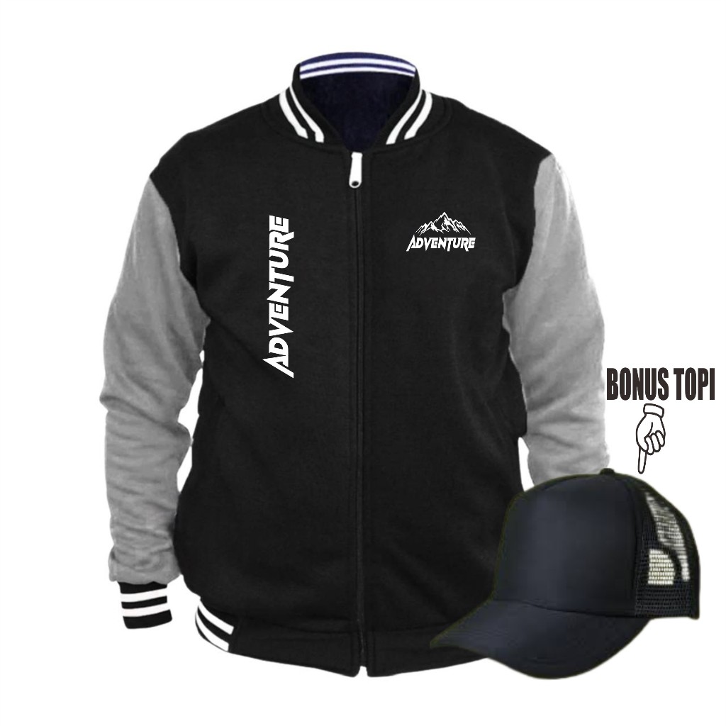 MERAH BONUS HAT - Unisex Maroon Varsity Baseball Zipper Varsity Jacket