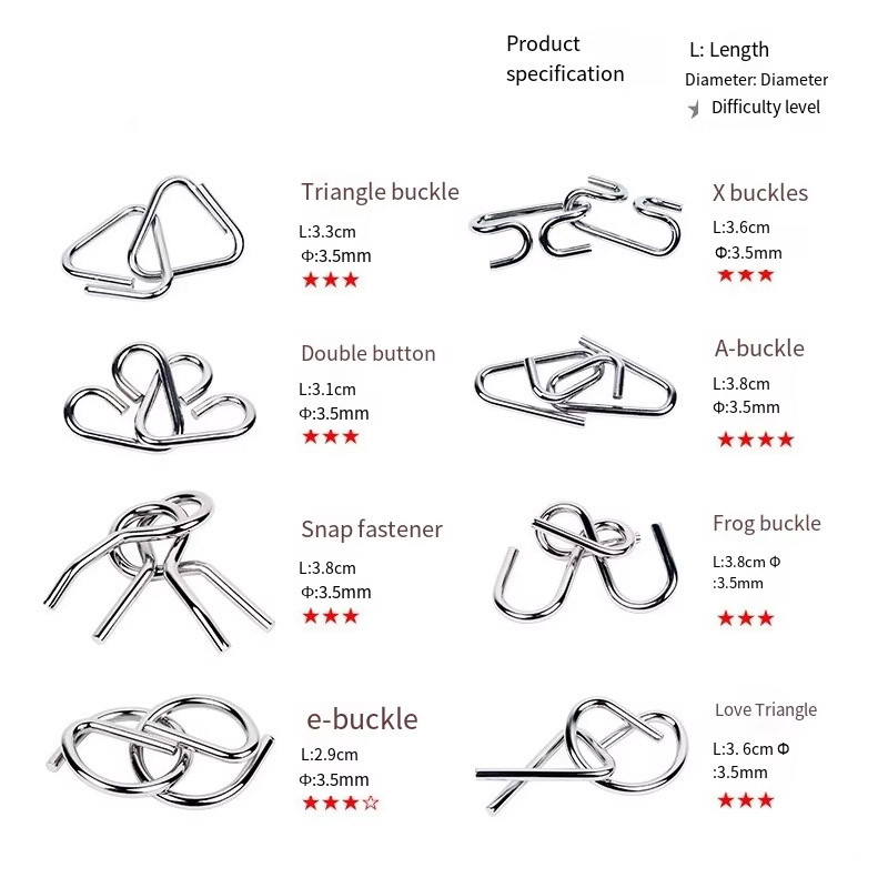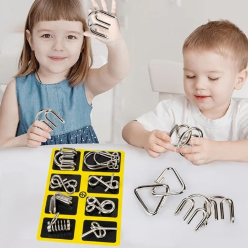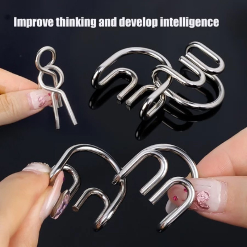 Metal Wire Puzzle Metal Nine-link Clasp Puzzle Toy Baby Brain Develop Puzzle for Kids Montessori Toy