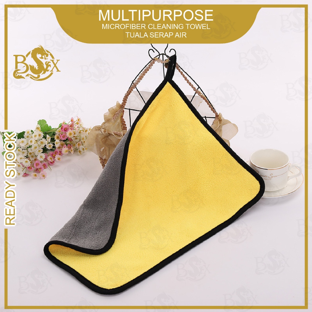 Microfiber Car Cleaning Towel Multipurpose High Water Absorption Plush Wax Polish Cloth Kain Lap Kereta 抹布