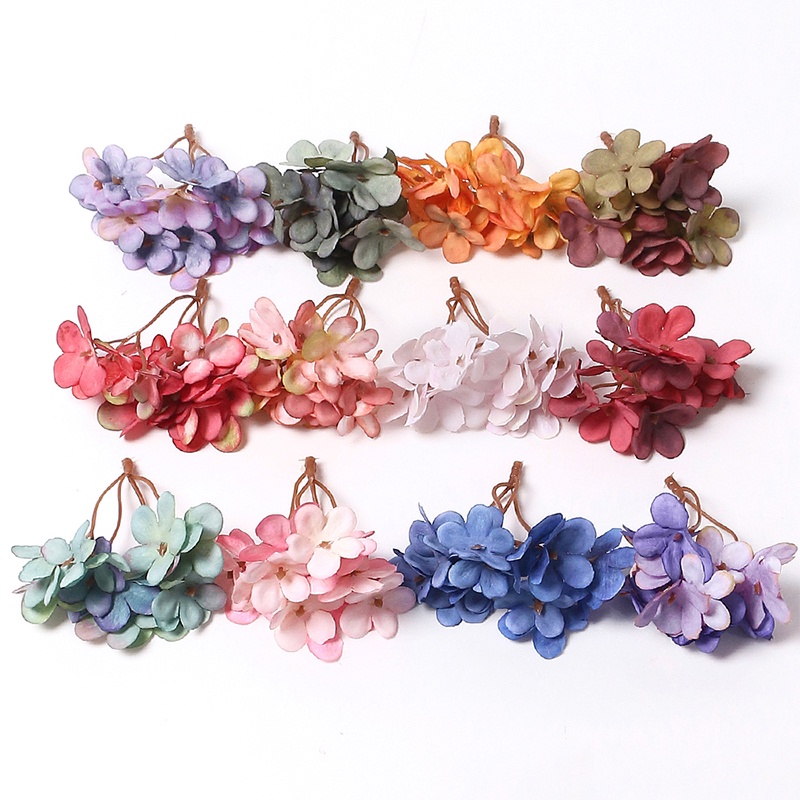 Mini Hydrangea Artificial Flowers Home Wedding Decor Fake Flowers Leaf DIY Cake Craft Garland Accessories