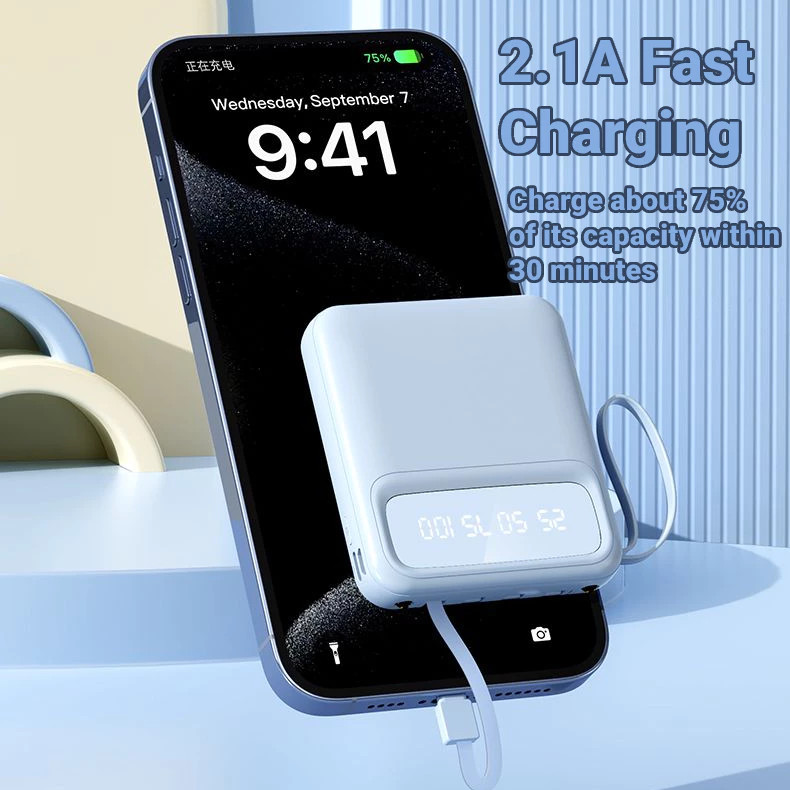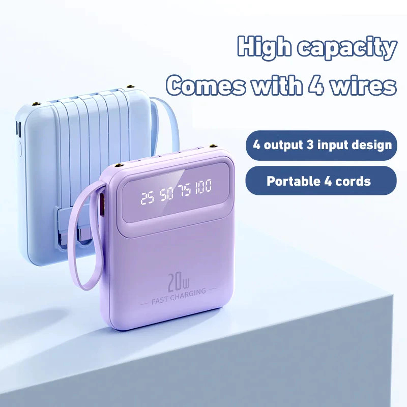 Mini Powerbank 30000mAh Fast Charging built-in 4 Cables come with digital display portabale power bank