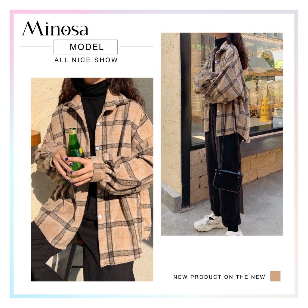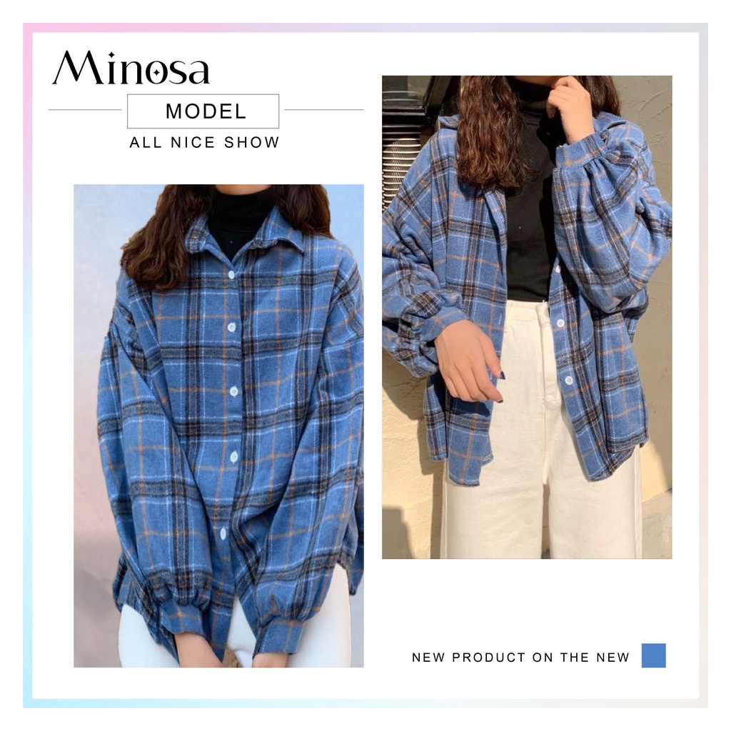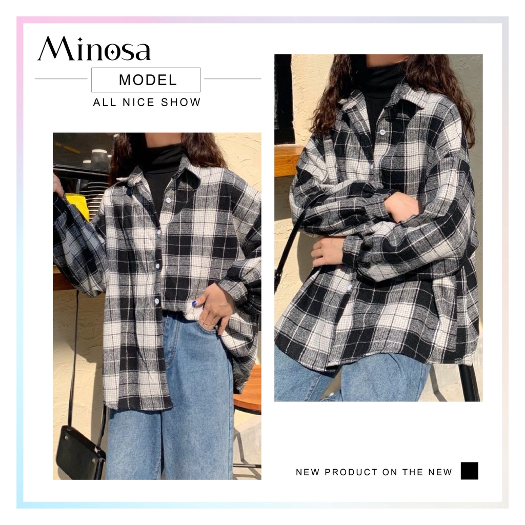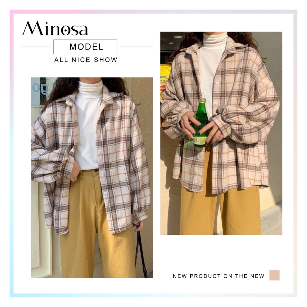 MINOSA Women Retro Vintage Checked Plaid Shirt Loose Casual Oversized Cardigan Top Button Oversize Collar Plus Size S-3X
