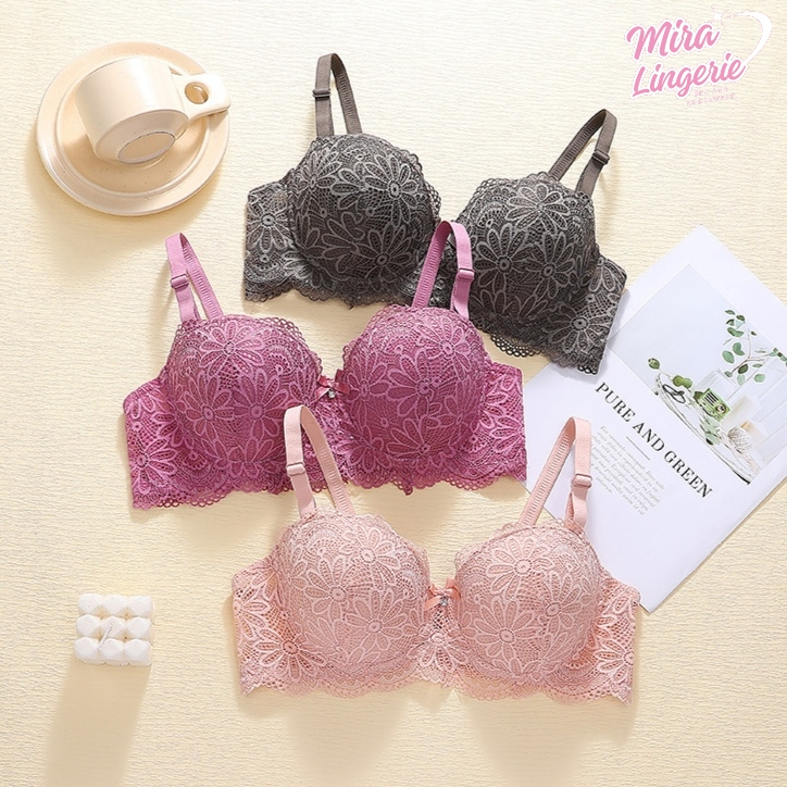 [Mira Lingerie] Bra Women Plus Size Push Up Lace Wired Baju Dalam Wanita Saiz Besar Renda Berdawai 女士内衣聚拢型文胸蕾丝有钢圈加大码胸罩