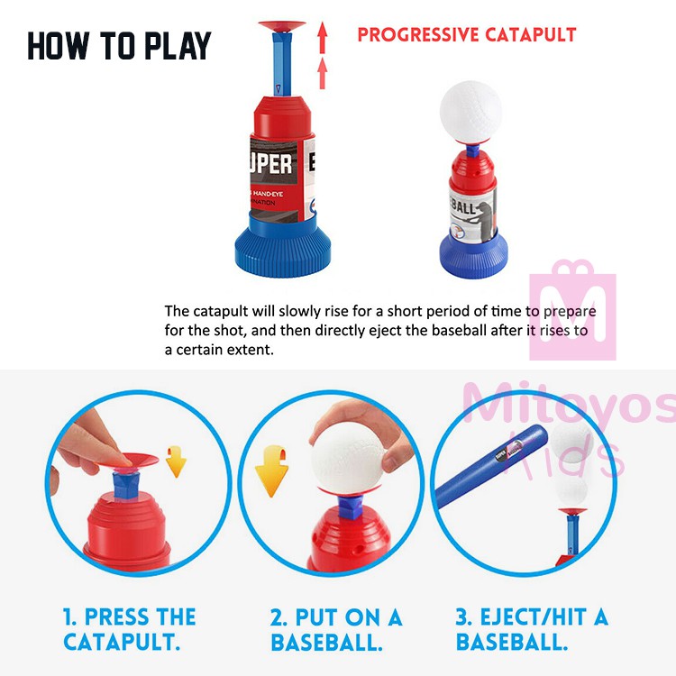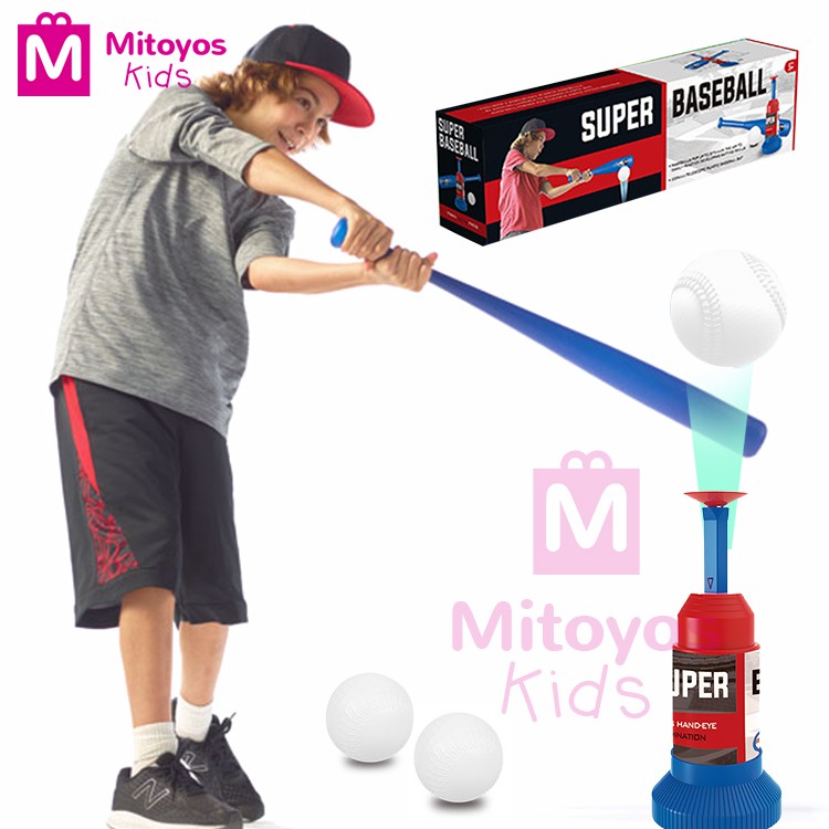 Mitoyos Kids Baseball Auto Launcher Training Soft Safety Plastic Base Ball Exercise Bat Set Indoor Outdoor Sport Toy