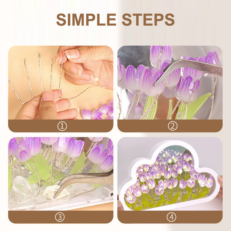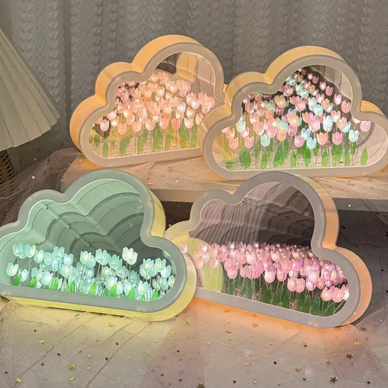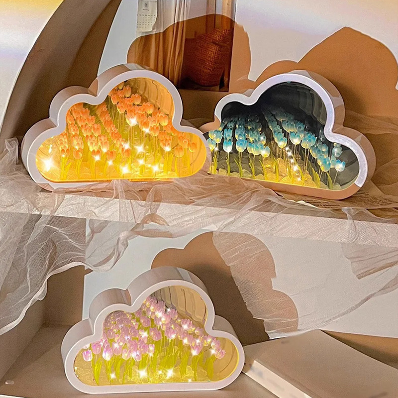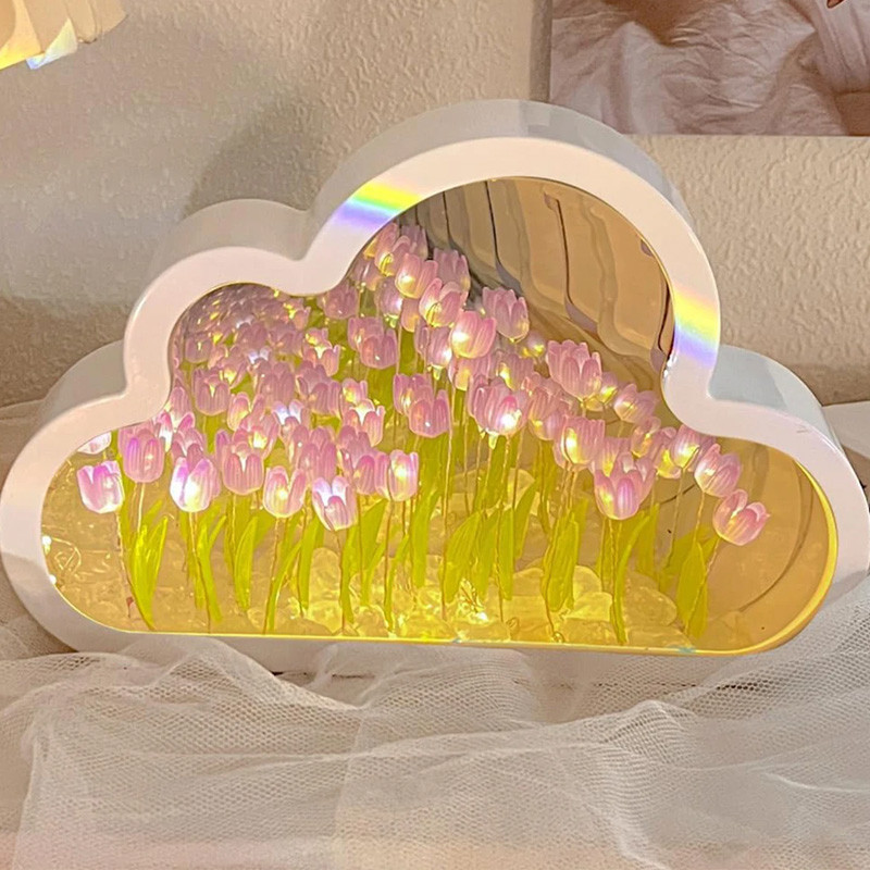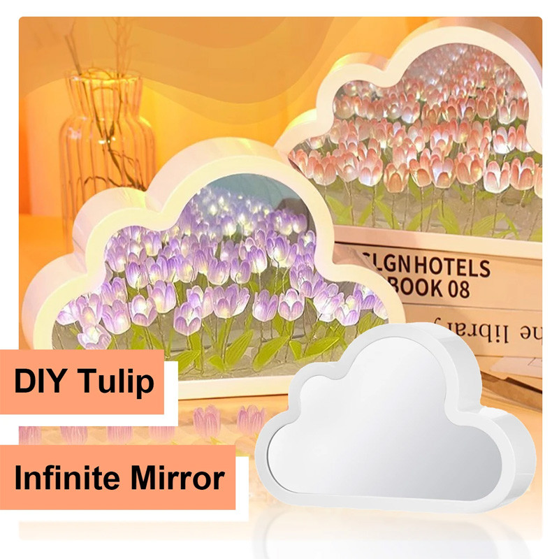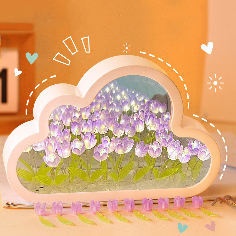 MLADEN Tulip Night Light DIY Clouds Shape Tulip Mirror Table Lamp Gifts - Blue/Purple/Pink