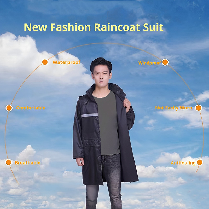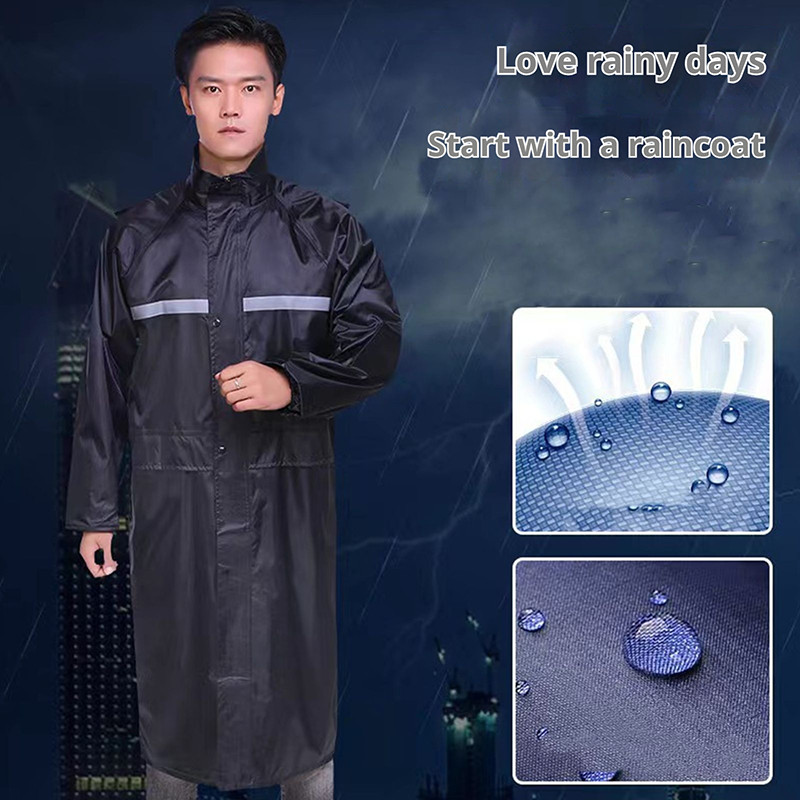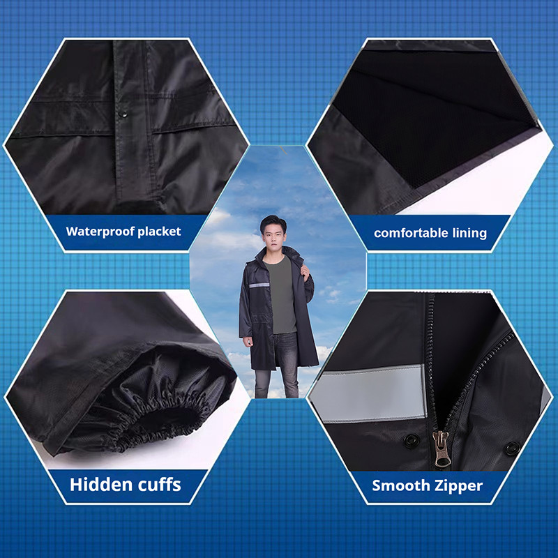 MN Hooded Rain Poncho,Black Waterproof Raincoat For Adults - Durable PVC, Zip-Up Hiking, Cycling, Fishing & Outdoor Activities