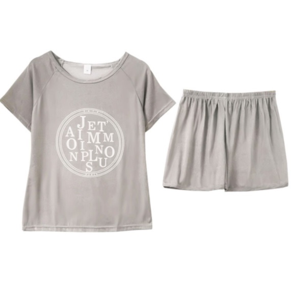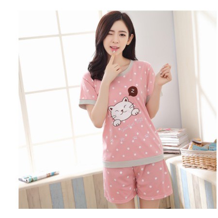 MOCHA Pajamas Set Lady Short Sleeve Cute Sleepwear Nightwear Baju Tidur Silk Licin ST326