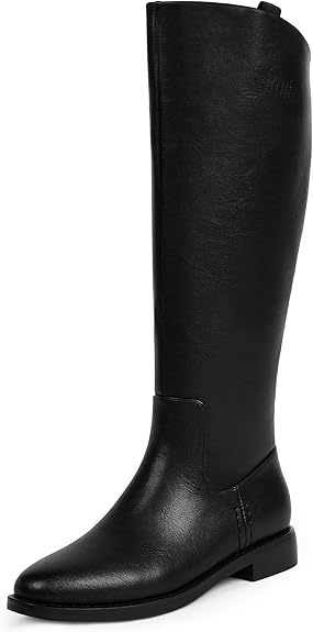 Modatope Knee High Boots Women Rounded Toe Flat Retro Bais Opening Low Chunky Heel Riding Boots