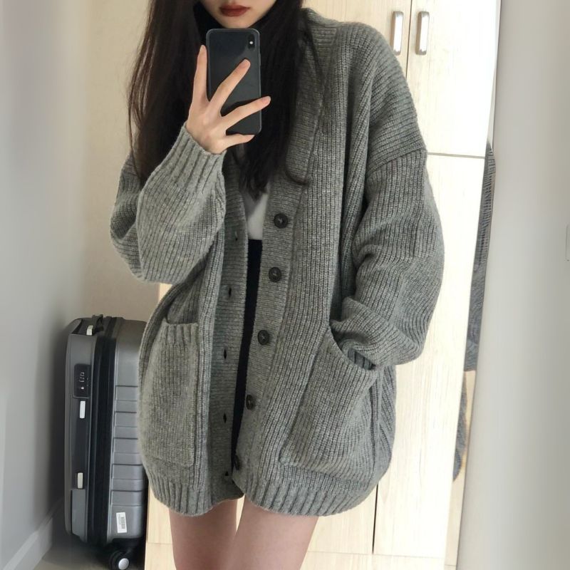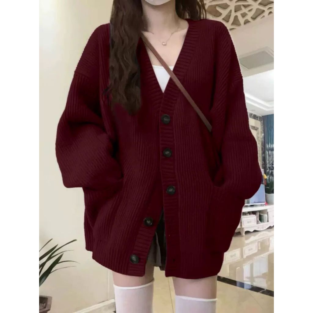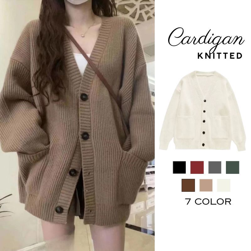 MOF Exclusive Women Casual Long Sleeves Loose Knitted Outer Cardigan Knitwear Wanita Lengan Panjang 长袖针织外套开衫 MFLC013